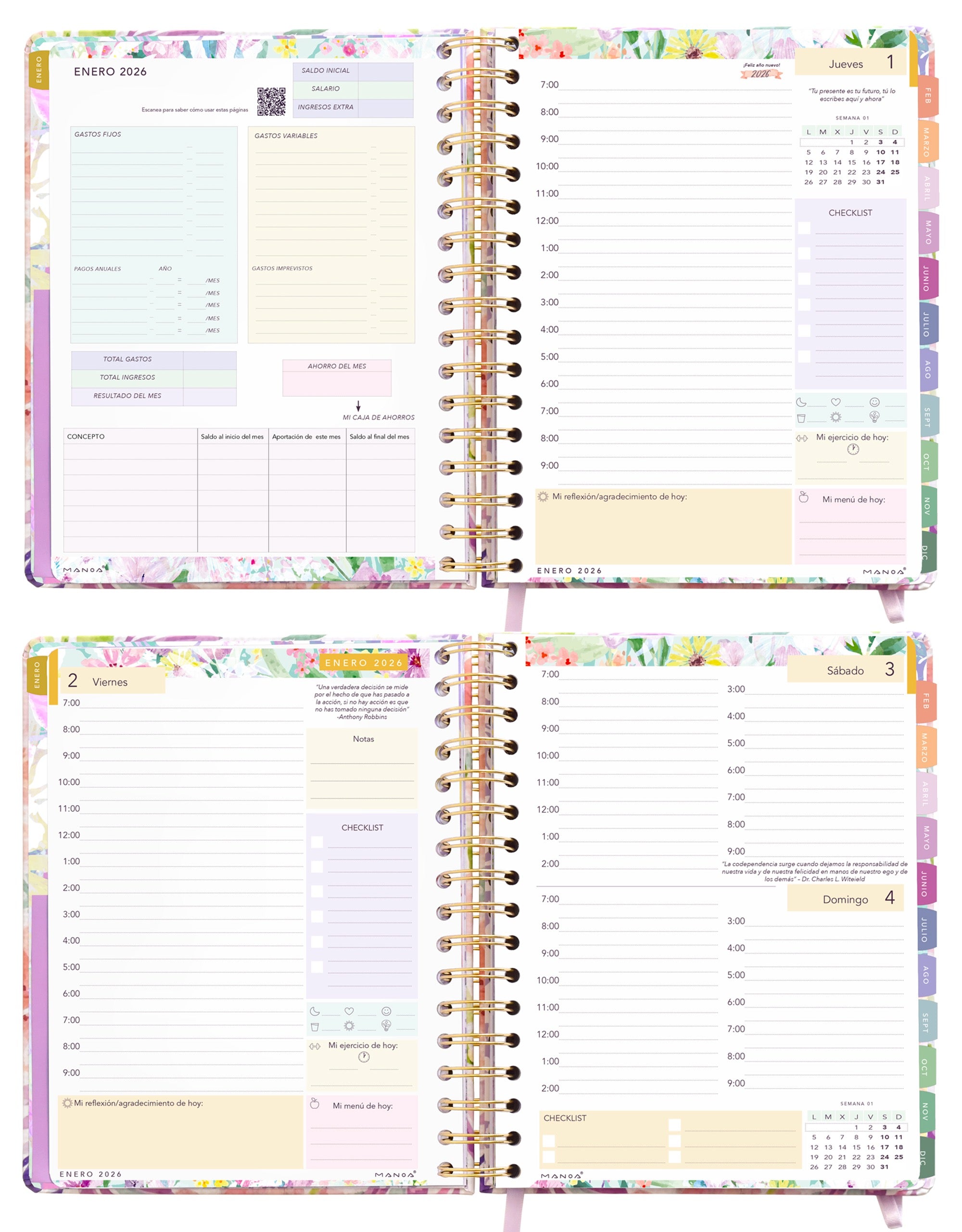 • Incluye checklist diario, frases motivacionales cada día y espacio para notas.