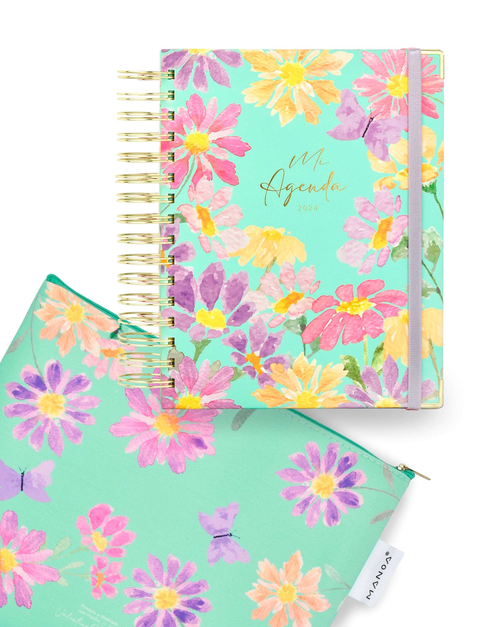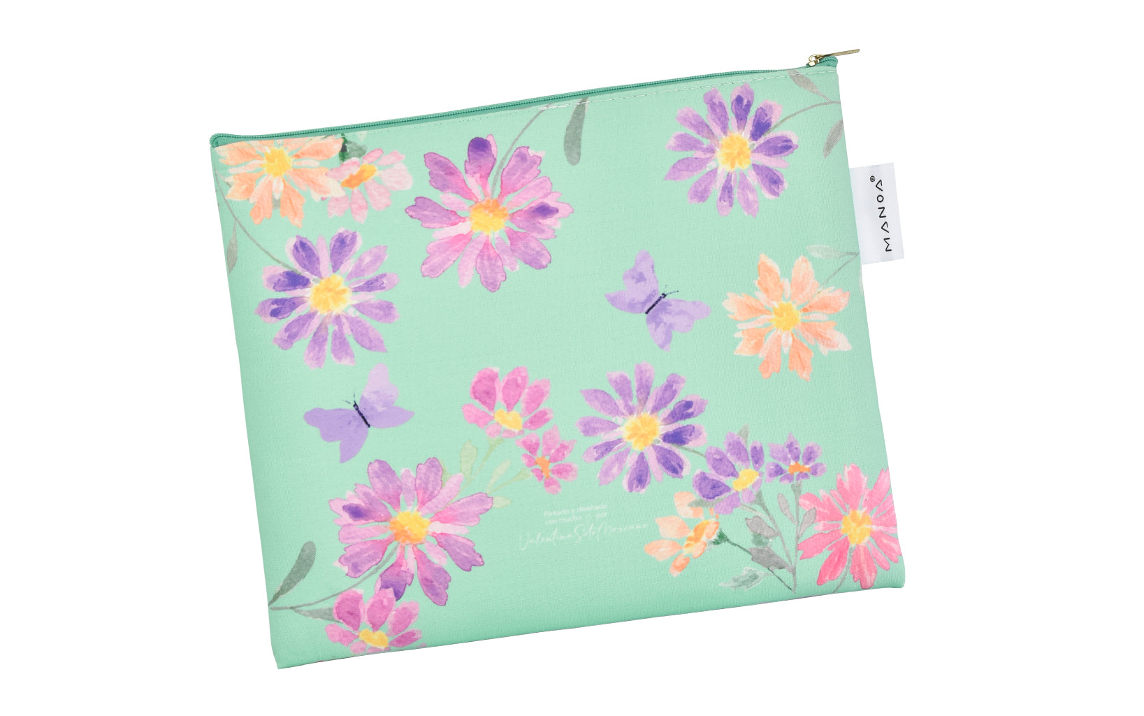 - Hermosa bolsita acolchada, de tela impresa con el diseño de la agenda Camila.