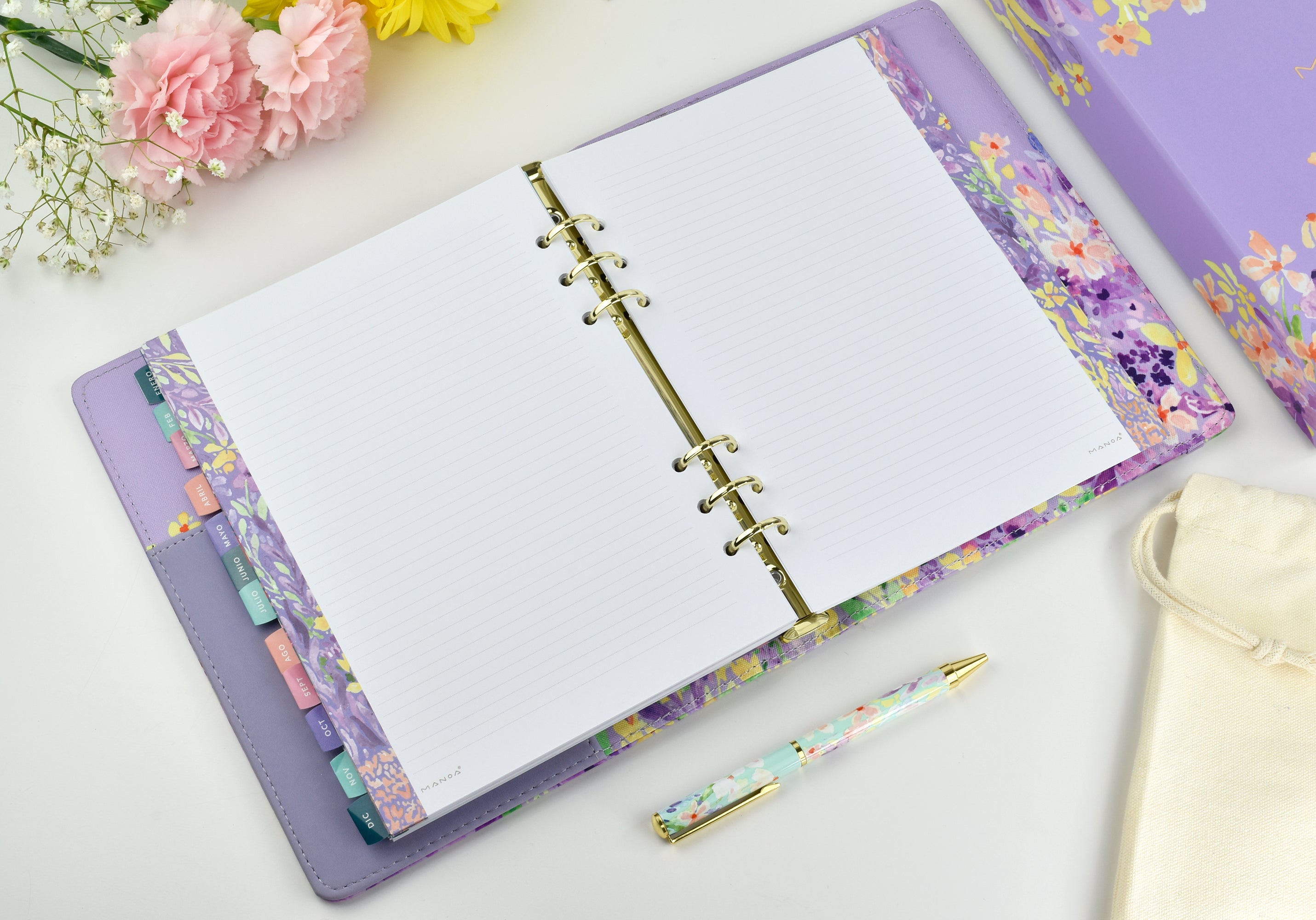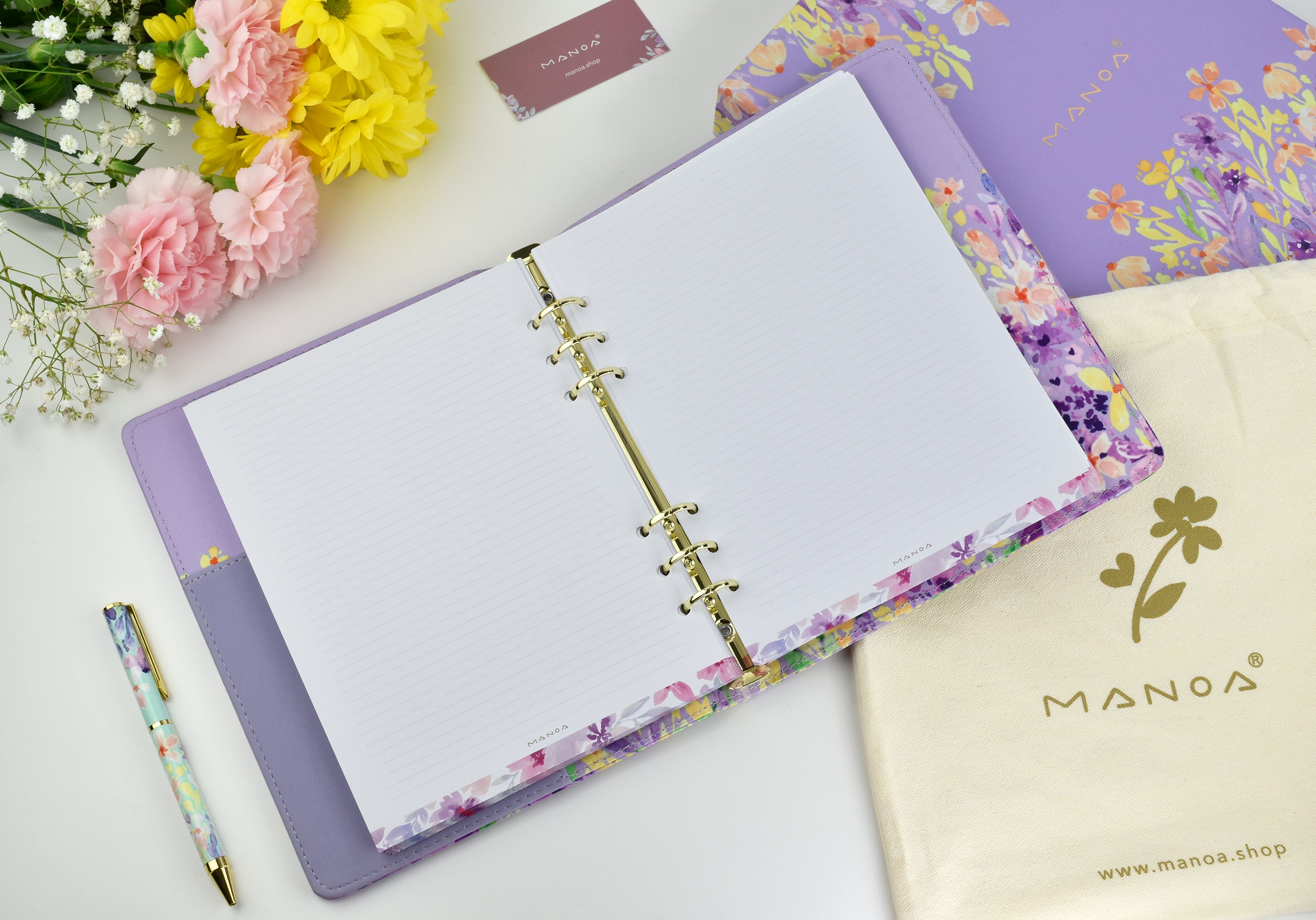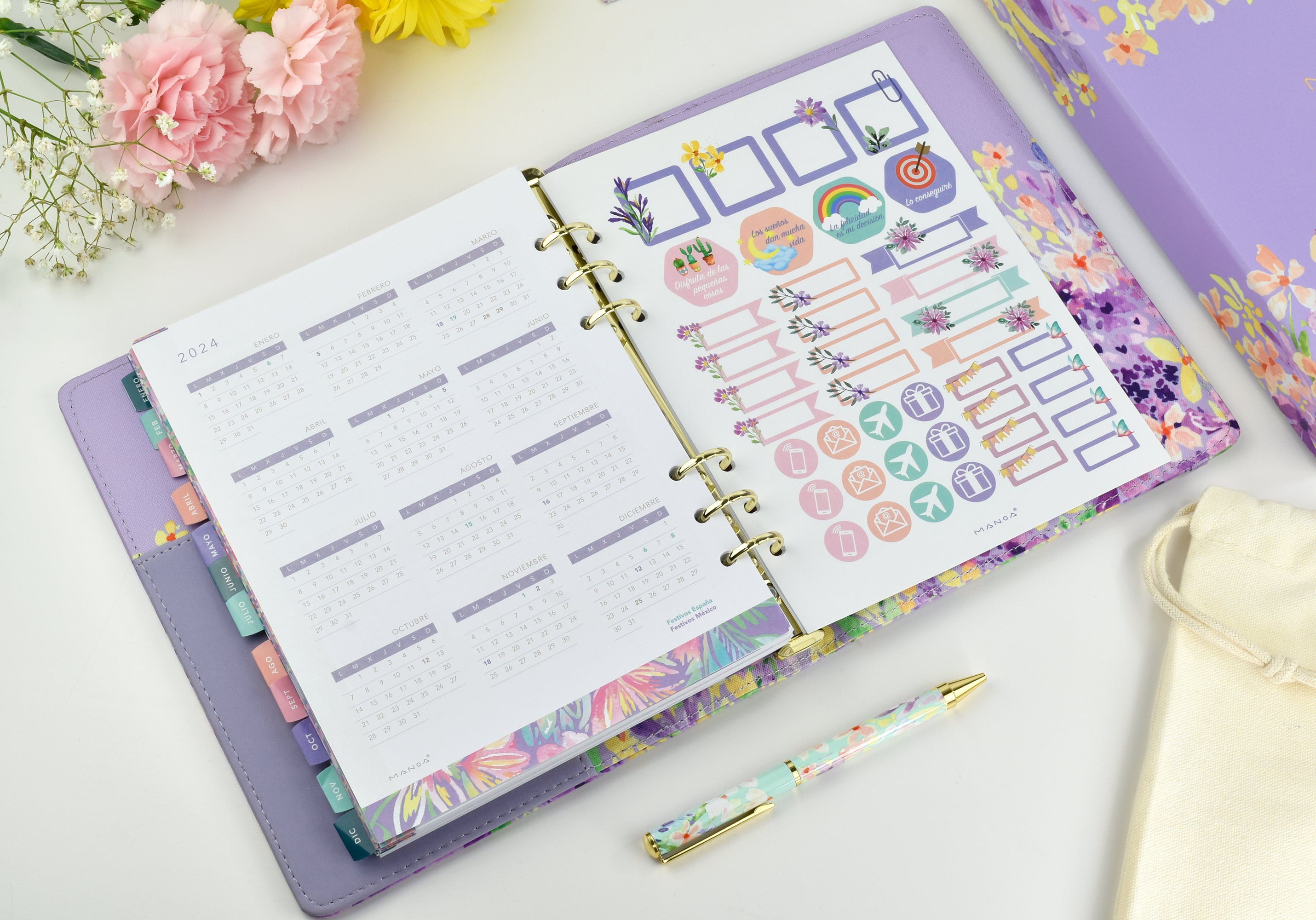 Agenda MANOA® 2026 Día por Página con franjas horarias 380 páginas (190 hojas) que incluyen pestañas separadoras mensuales, páginas de planificación mensual, contraseñas y contactos, horario, control menstrual, control financiero, objetivos y estrategias personales, mis propósitos para el año...) >>>(IMPORTANTE: no caben todas las hojas de este pack, tendrás que llevar solo unos meses).>>>