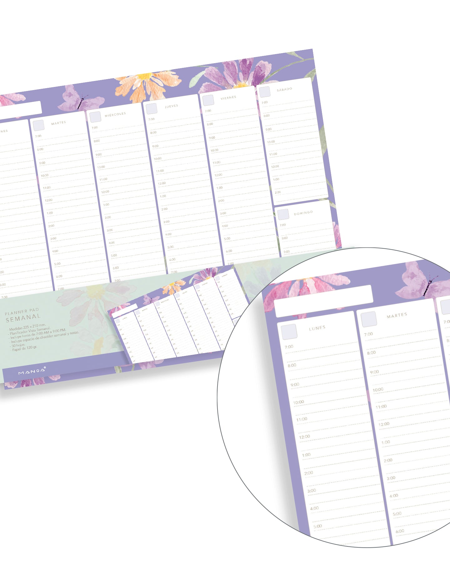 - Agenda sin fechas Semana Vista con días en columnas y franjas horarias. Pack de 100 páginas (50 hojas).