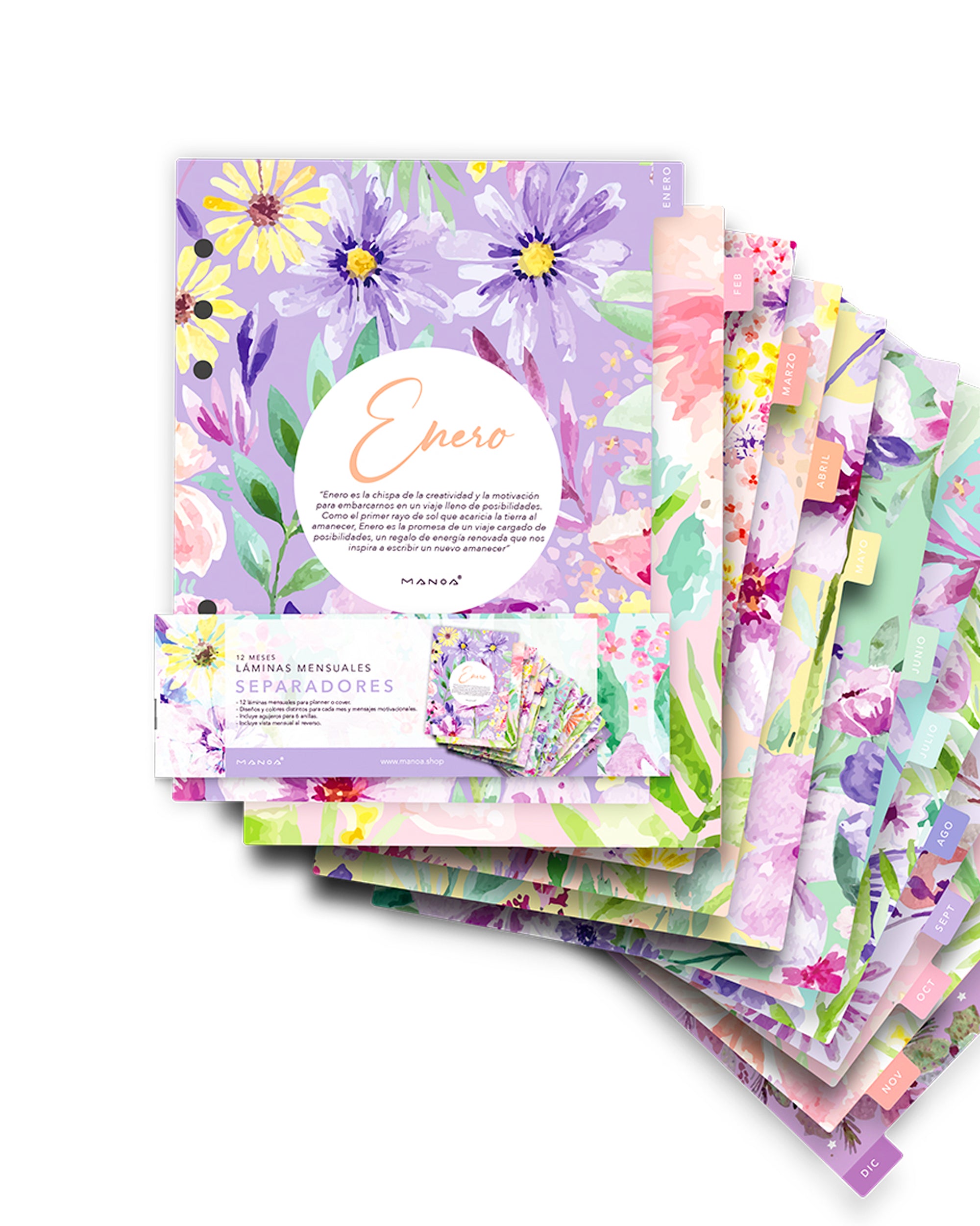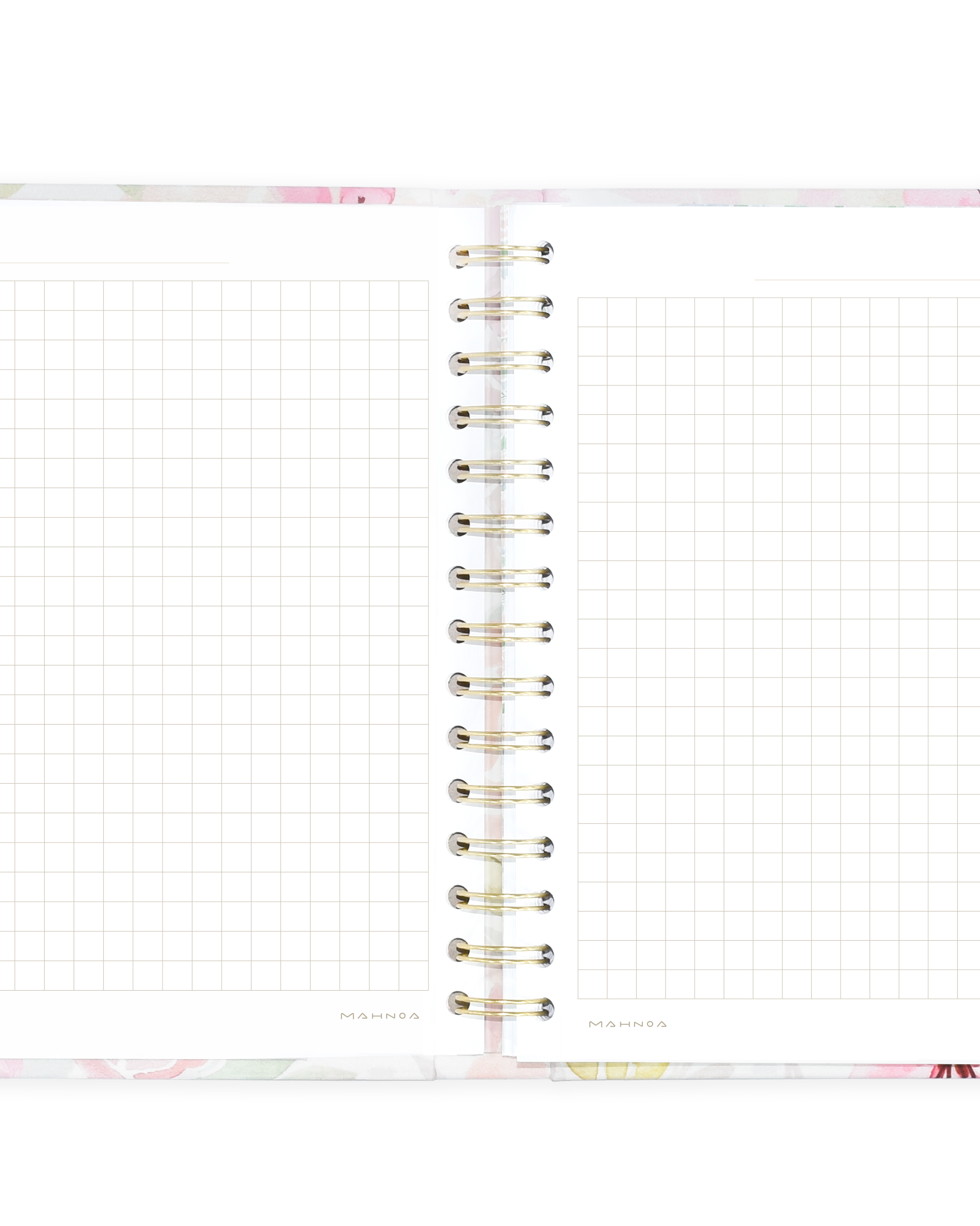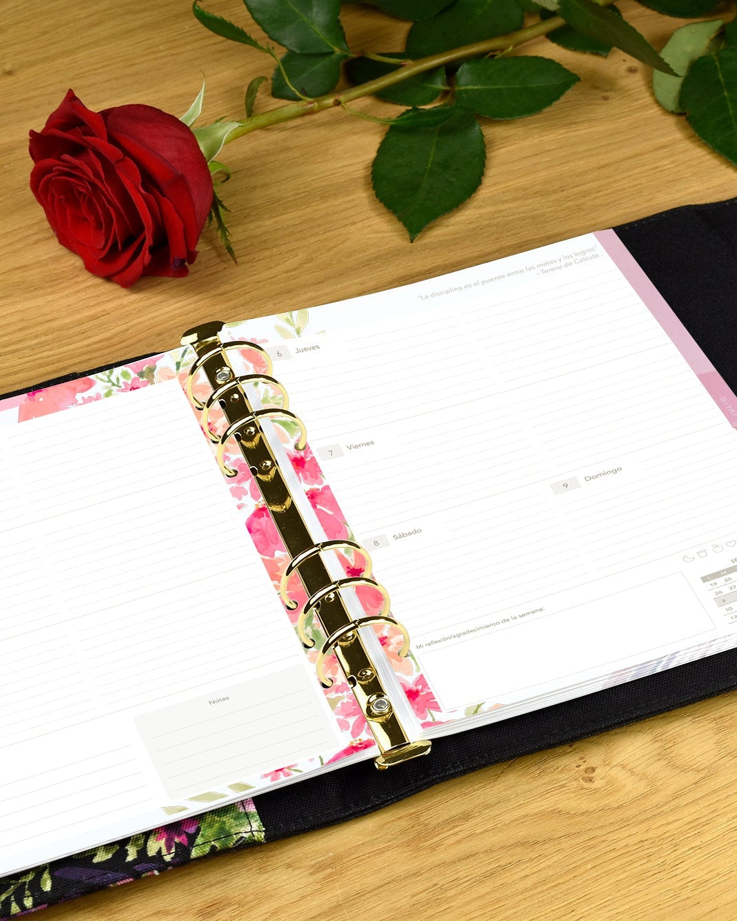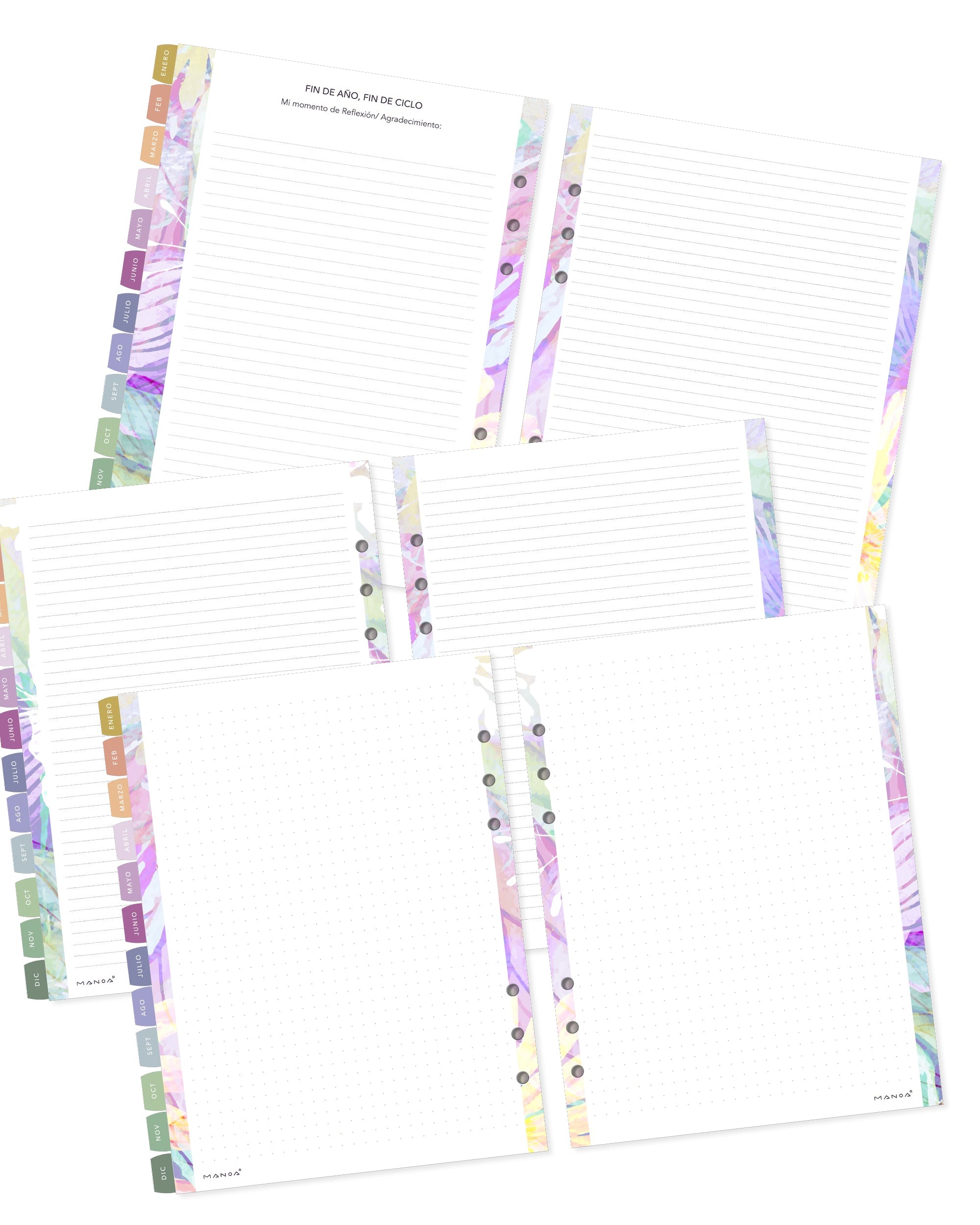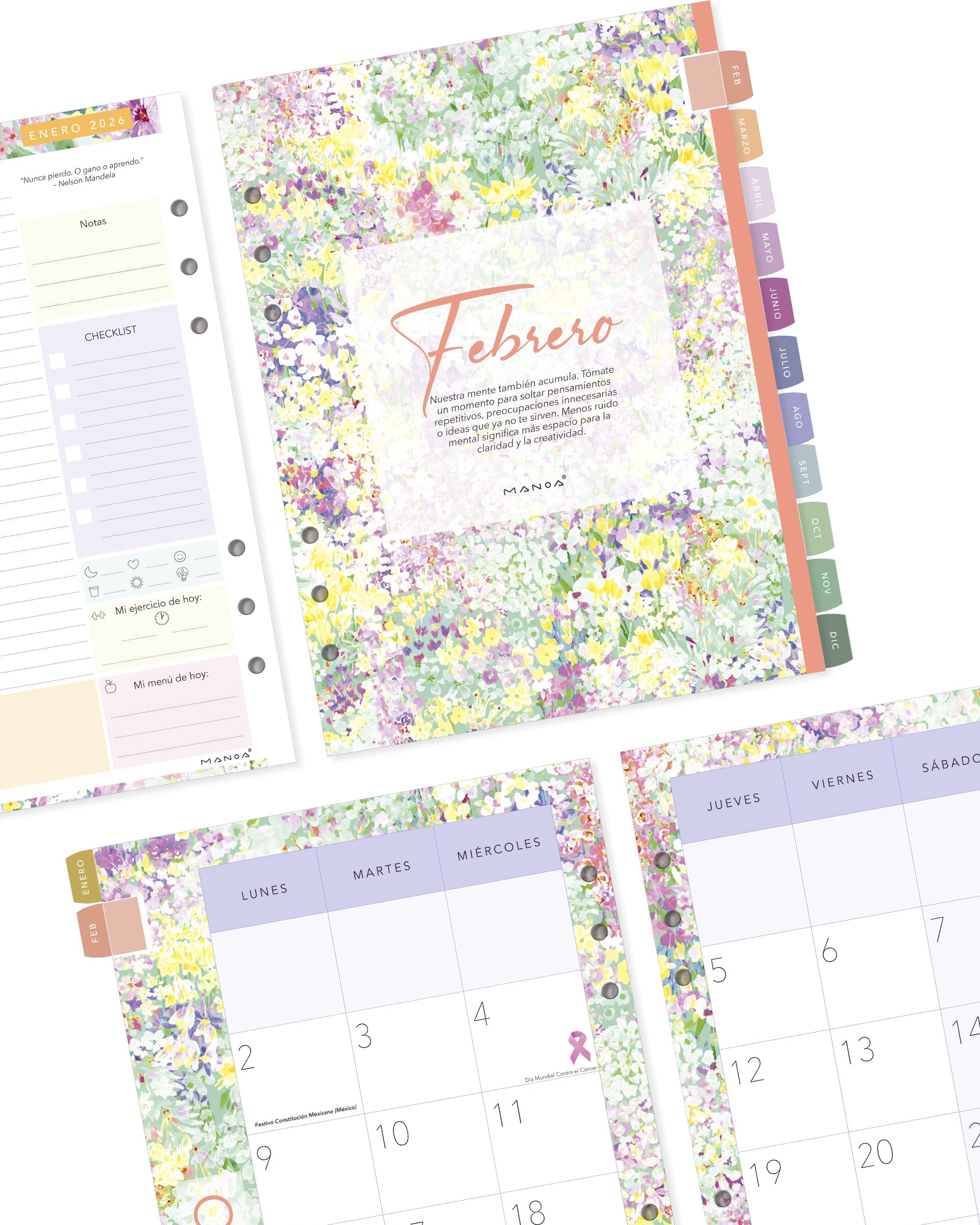Agenda MANOA® 2026 Día por Página con franjas horarias 380 páginas (190 hojas) que incluyen pestañas separadoras mensuales, páginas de planificación mensual, contraseñas y contactos, horario, control menstrual, control financiero, objetivos y estrategias personales, mis propósitos para el año...)