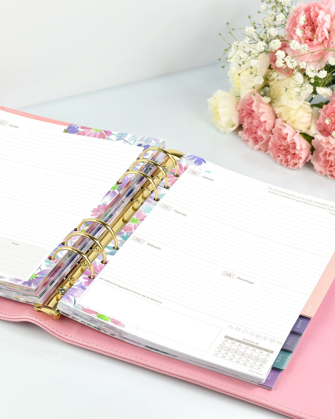 Configúralo como quieras! Su sistema de anillas te permitirá añadir y quitar las hojas para que lleves siempre contigo solo lo que necesitas. Configúralo con alguna de las siguientes opciones de interior: