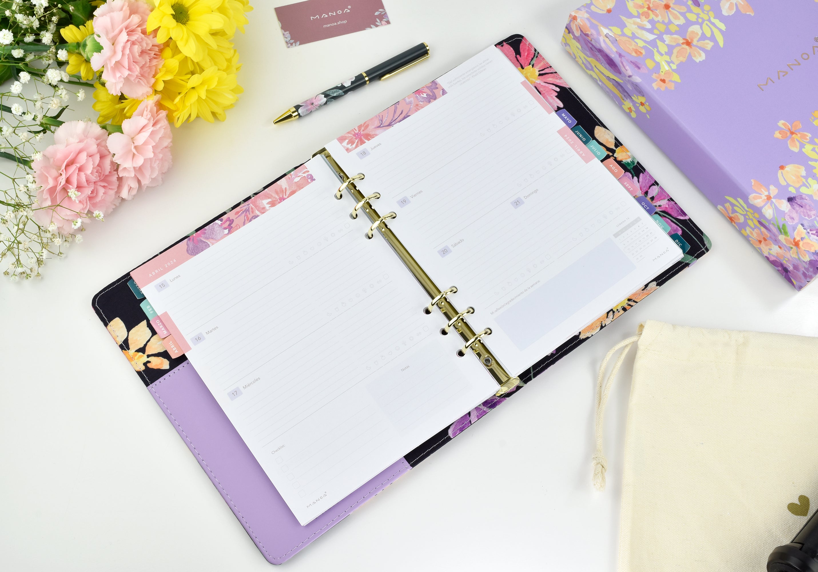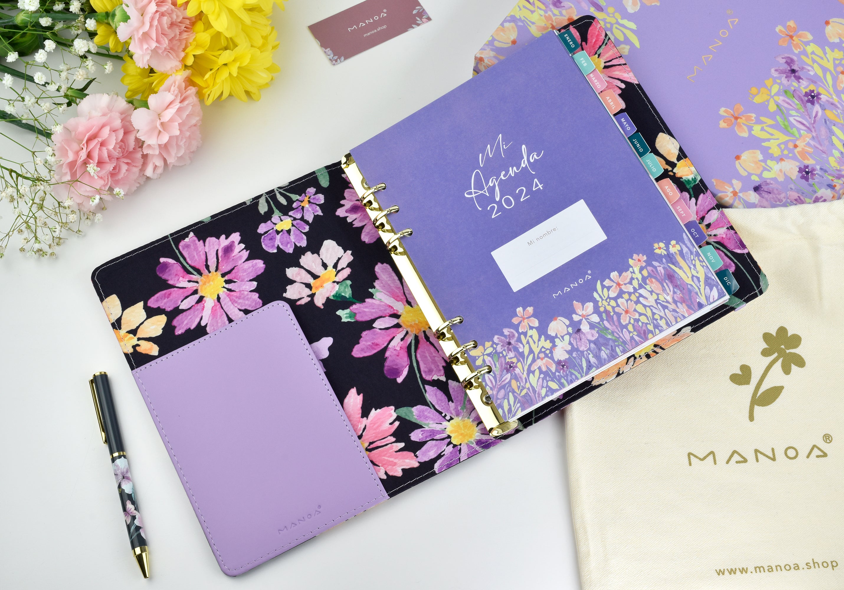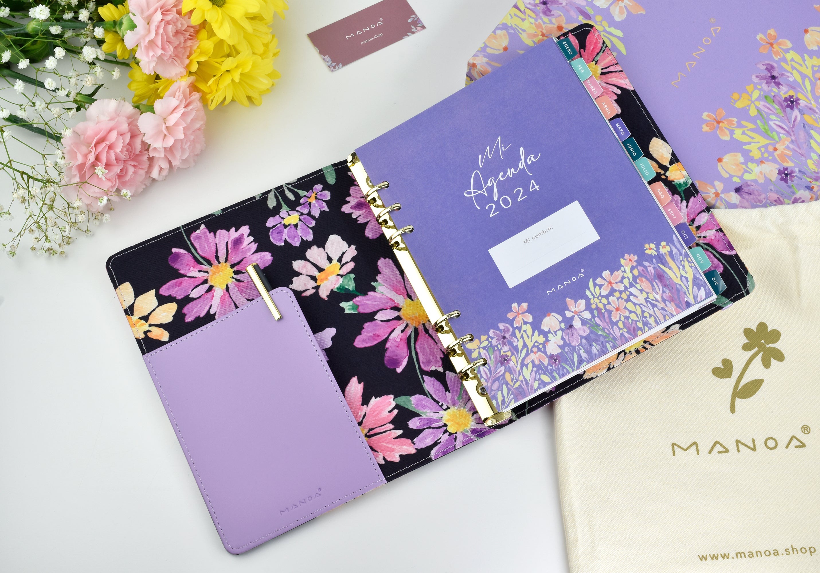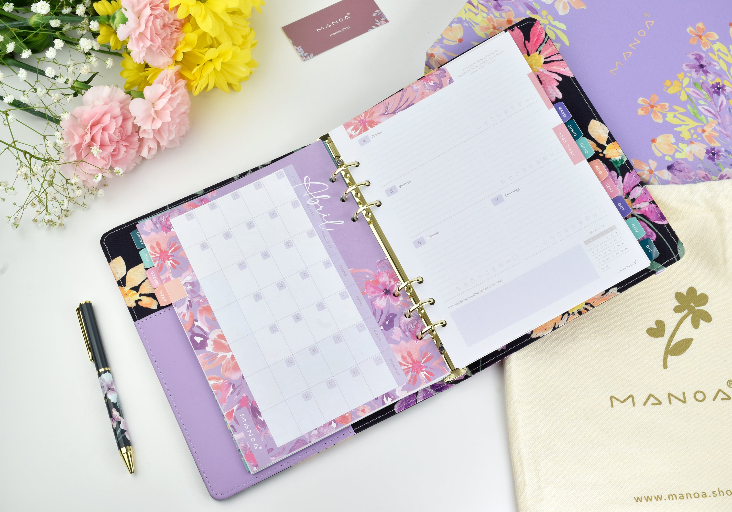 • Agenda MANOA® 2026 Día por Página con franjas horarias 380 páginas (190 hojas) que incluyen  pestañas separadoras mensuales, páginas de planificación mensualcontraseñas y contactos, horario, control menstrual, control financiero, objetivos y estrategias personales, mis propósitos para el año...) >>>(IMPORTANTE: no caben todas las hojas de este pack, tendrás que llevar solo unos meses).>>>