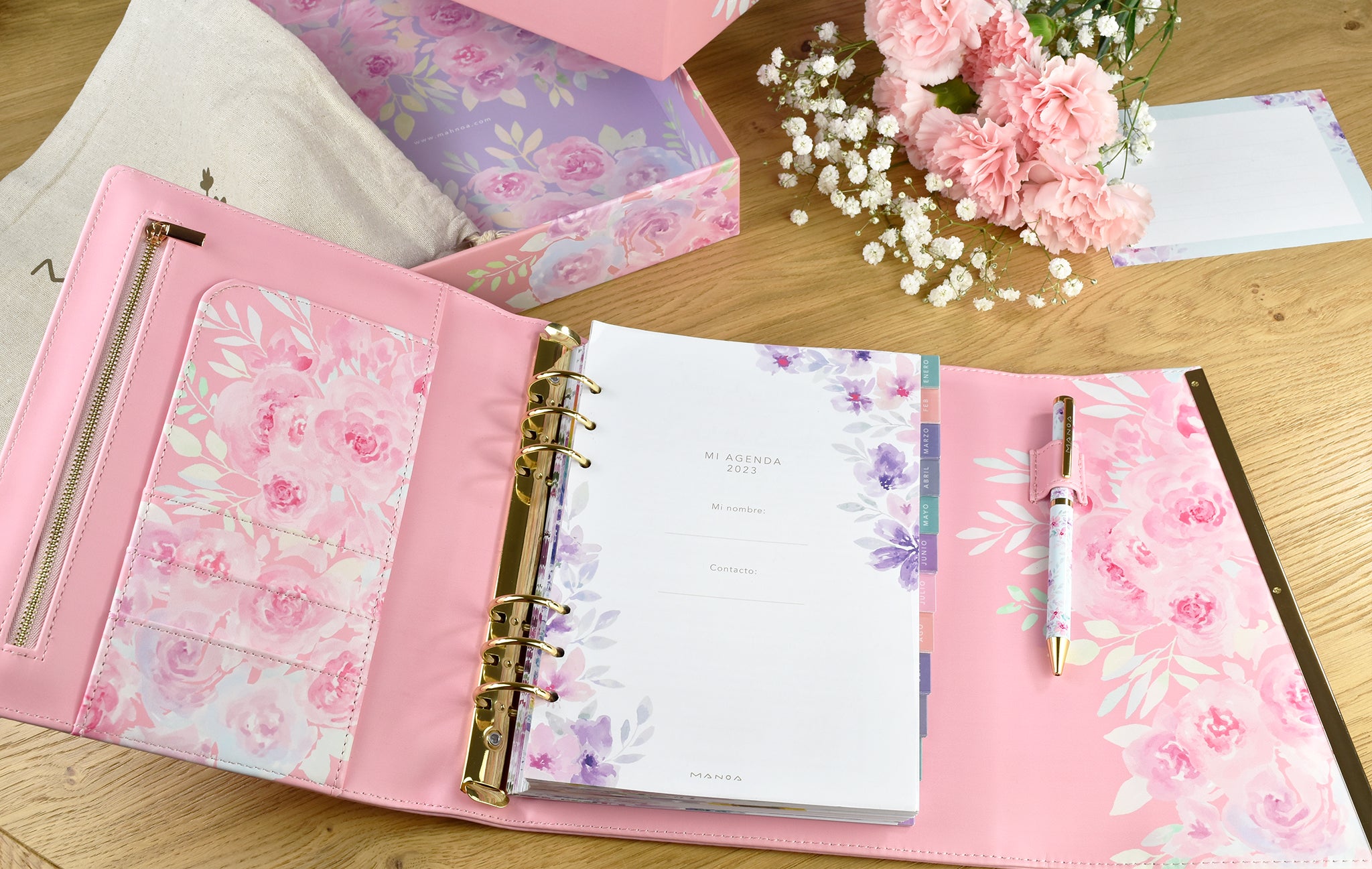 • Tienes la opción de elegir uno de nuestros bolígrafos, el planner incluye un bolsillo para llevarlo.