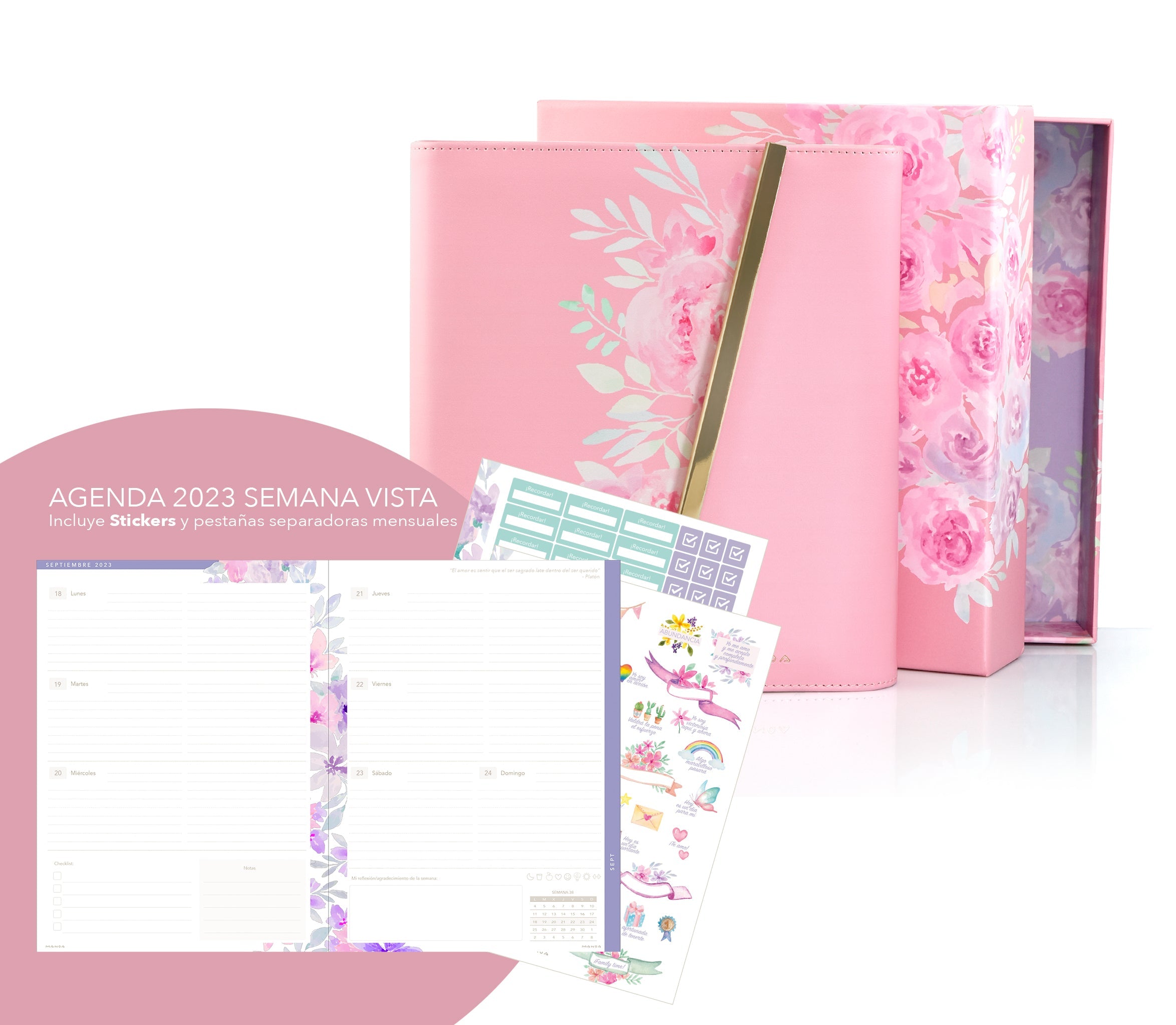 • Tienes la opción de añadir hermosa caja de regalo reutilizable y una funda para guardar y proteger tu planner.