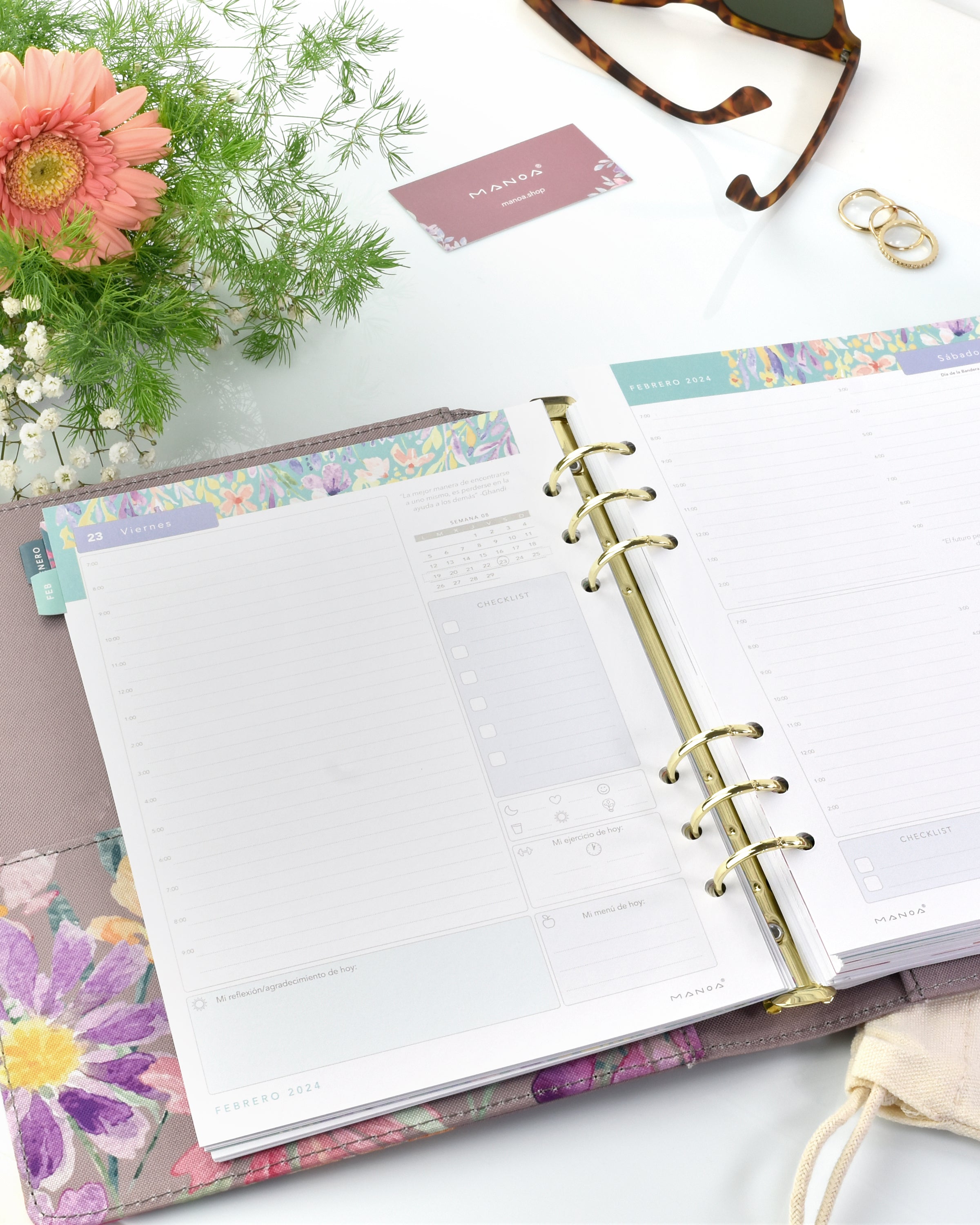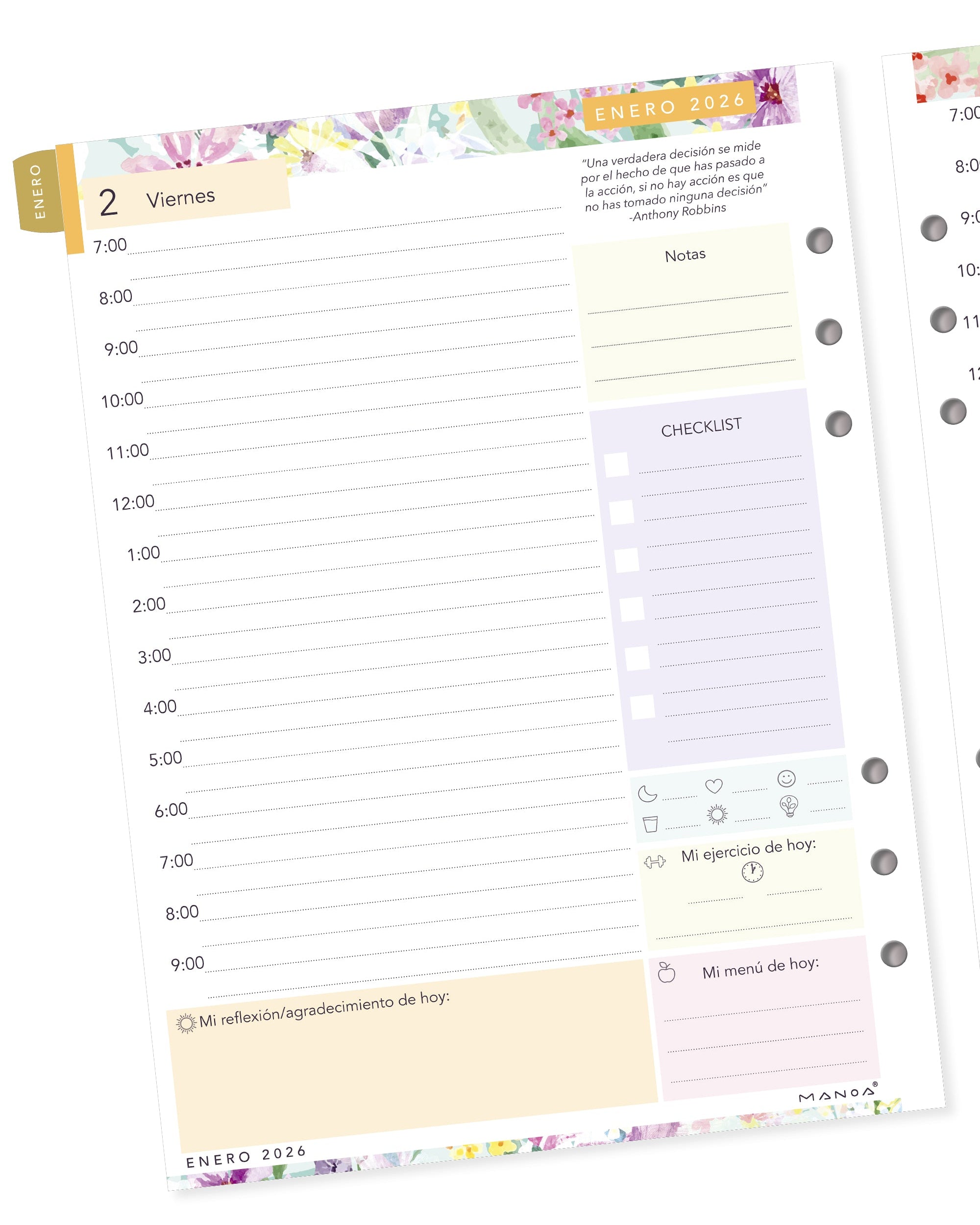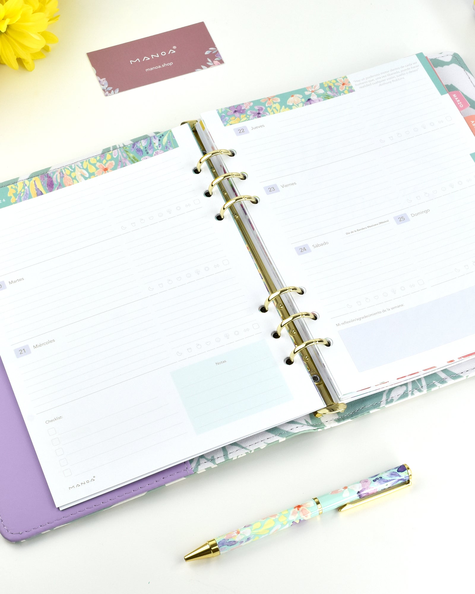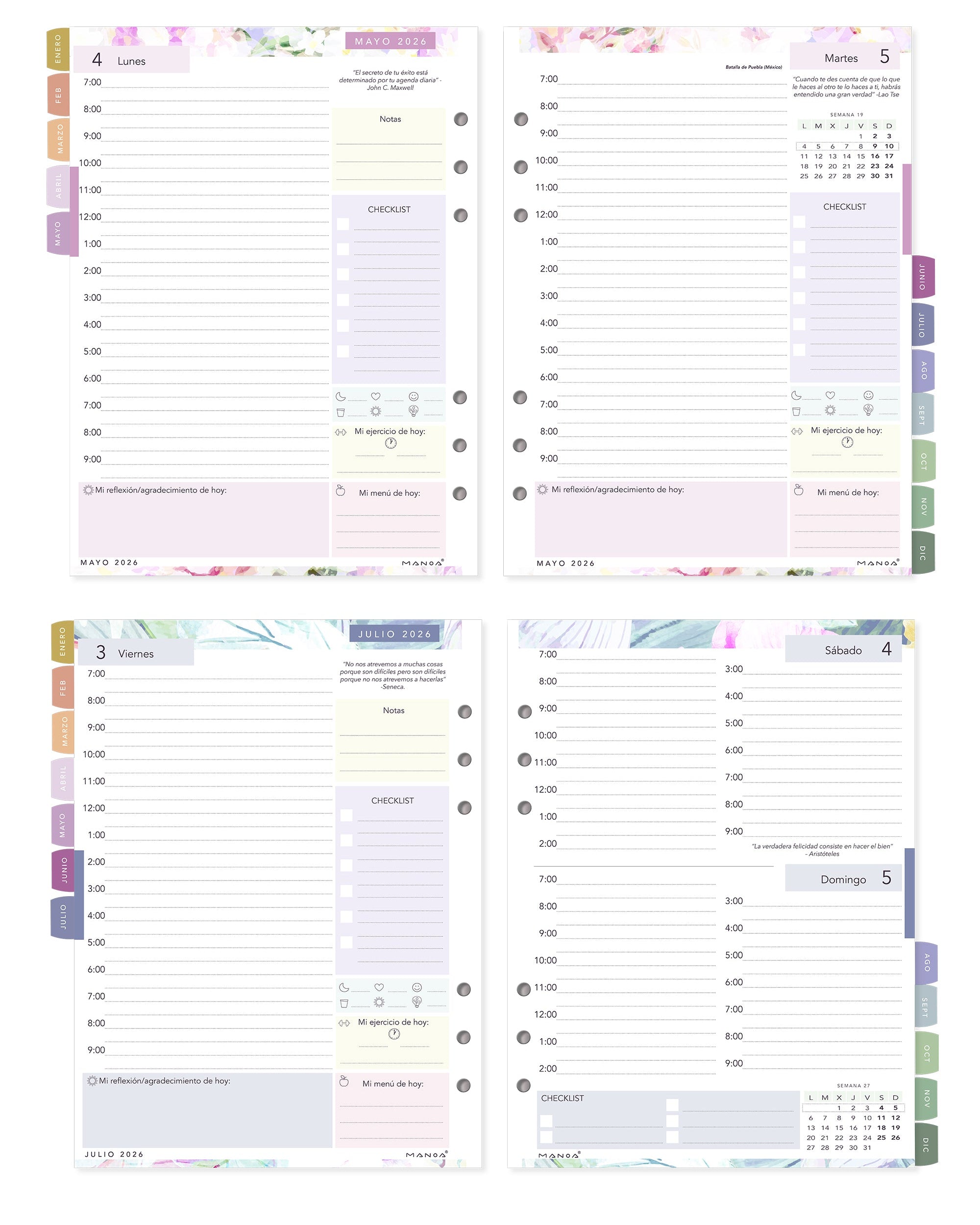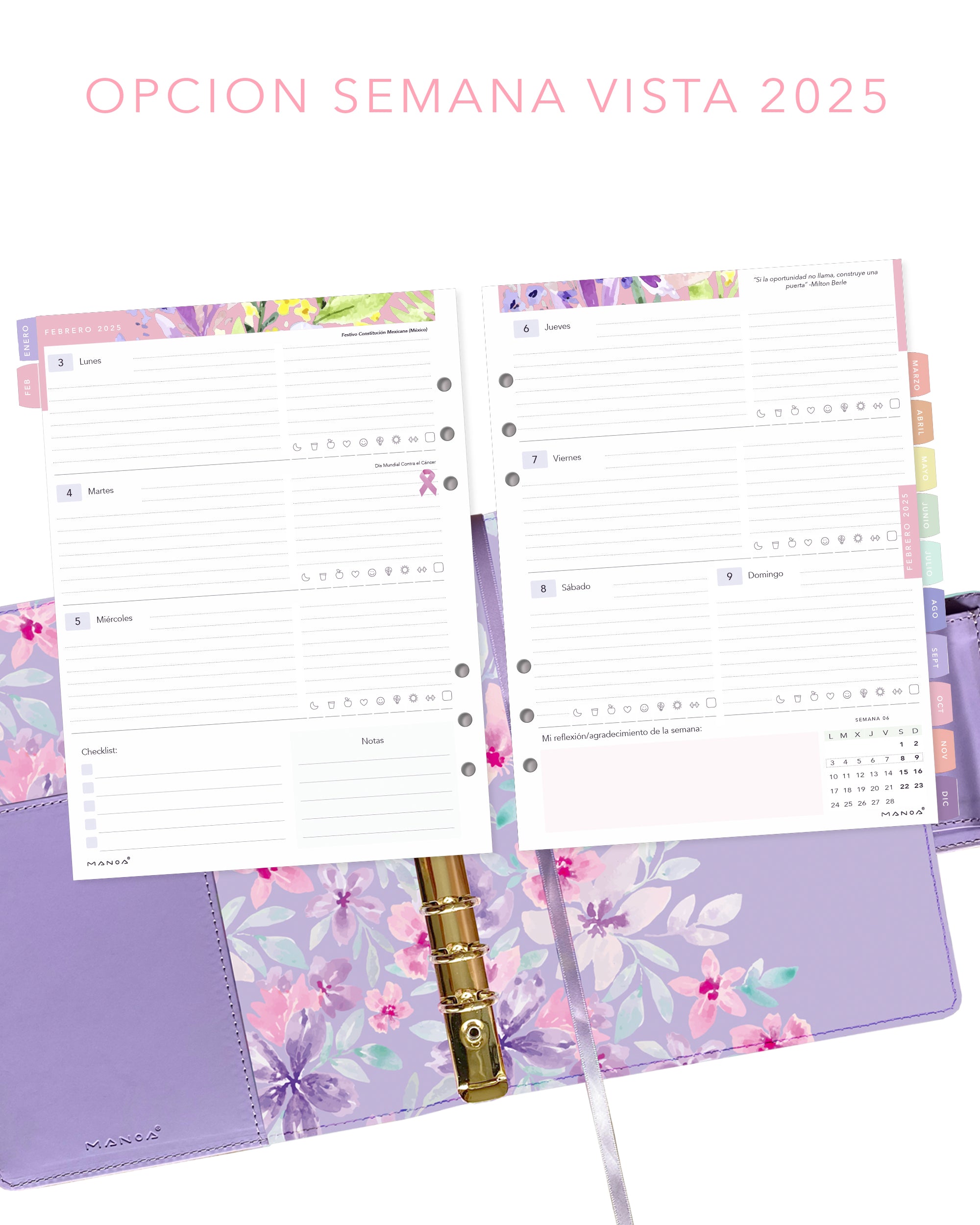 - Incluye checklist semanal, frases motivacionales cada semana y espacio para notas.