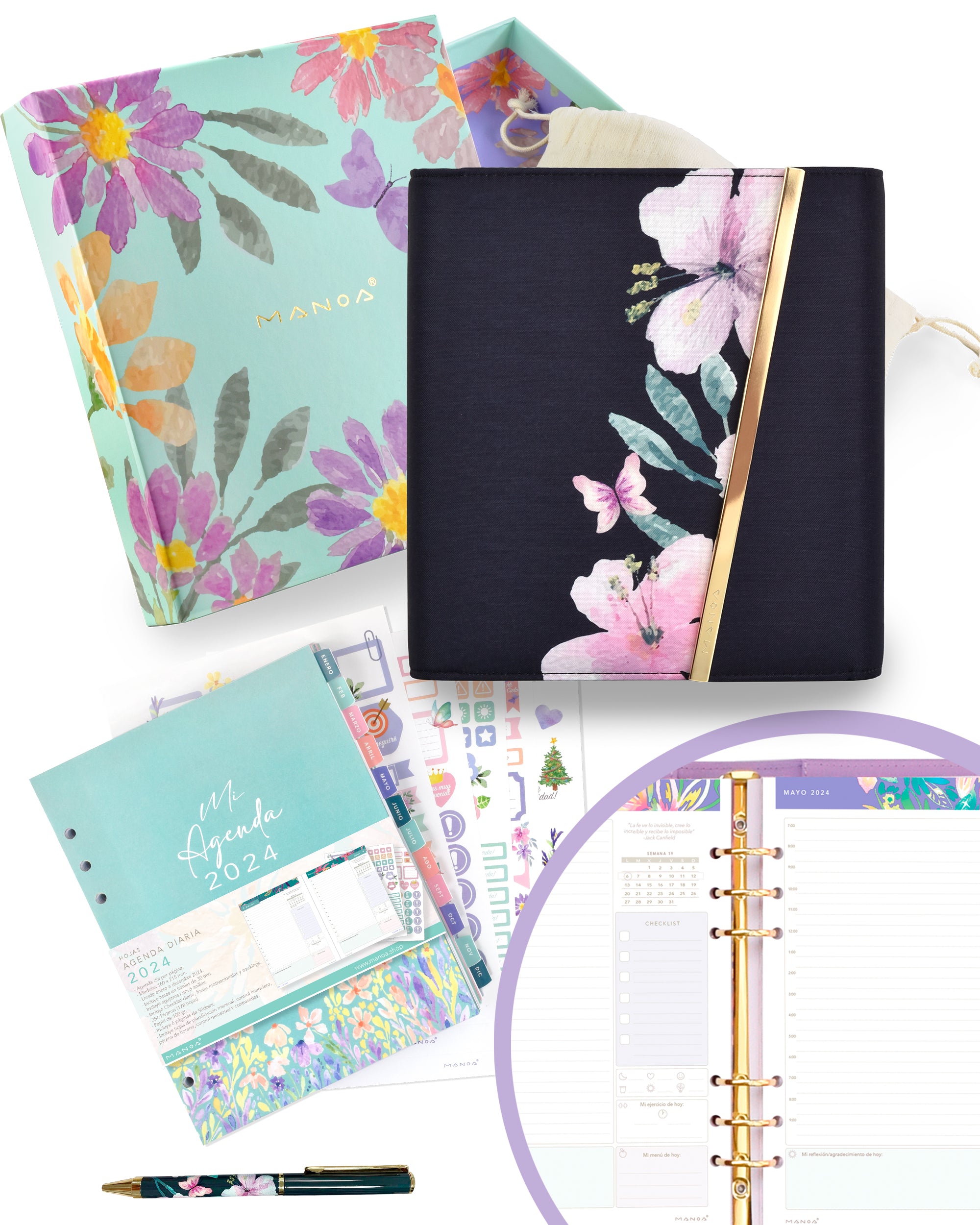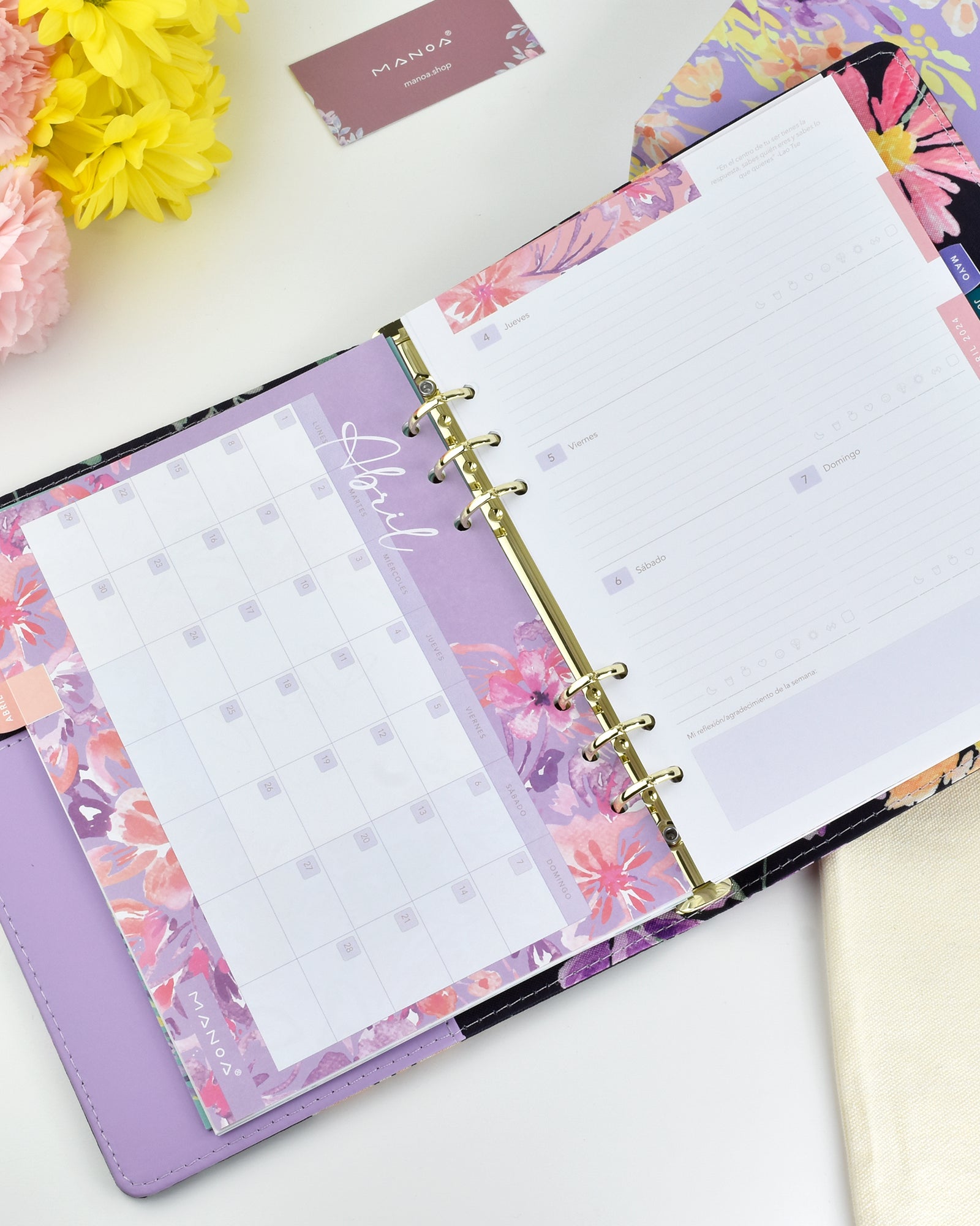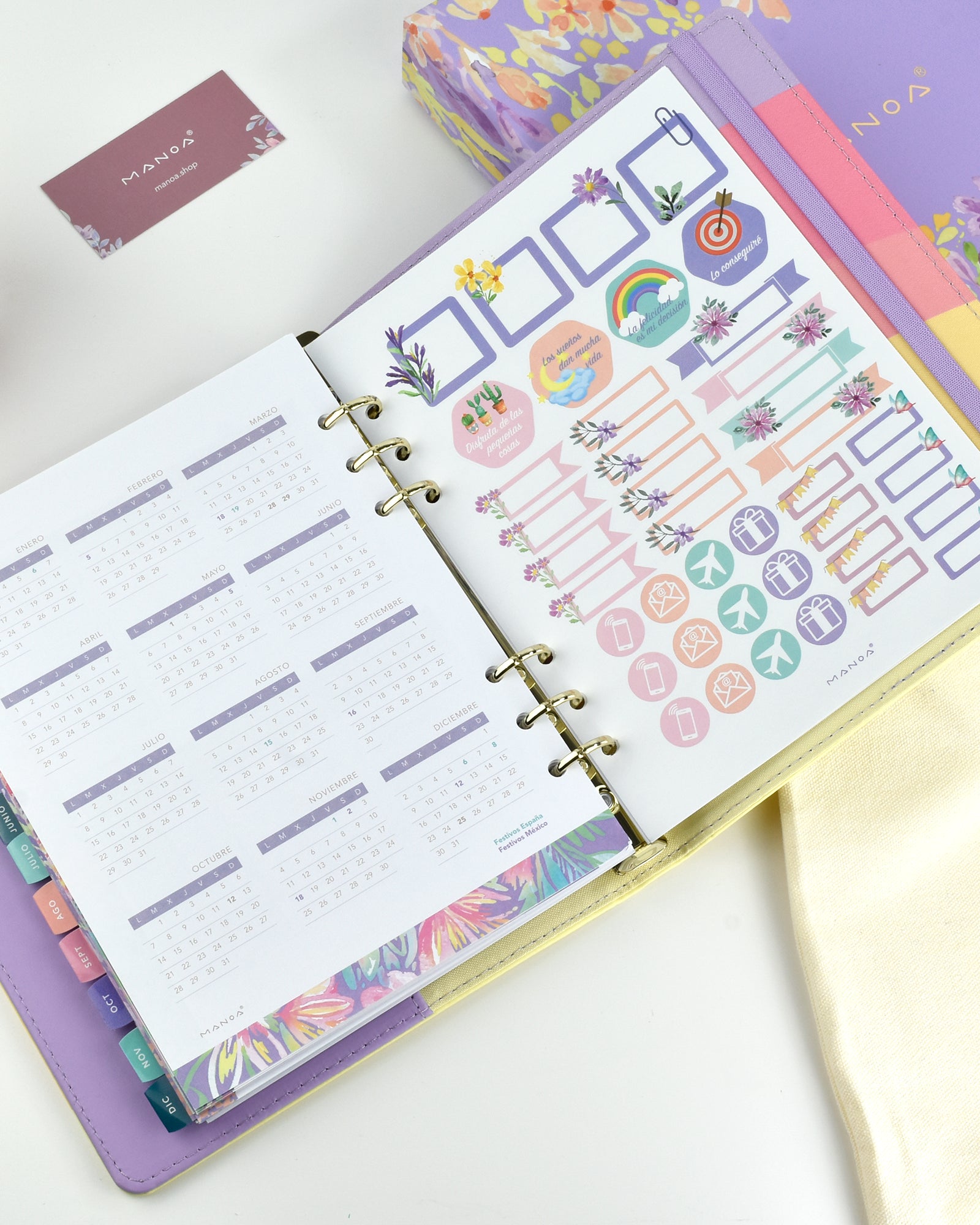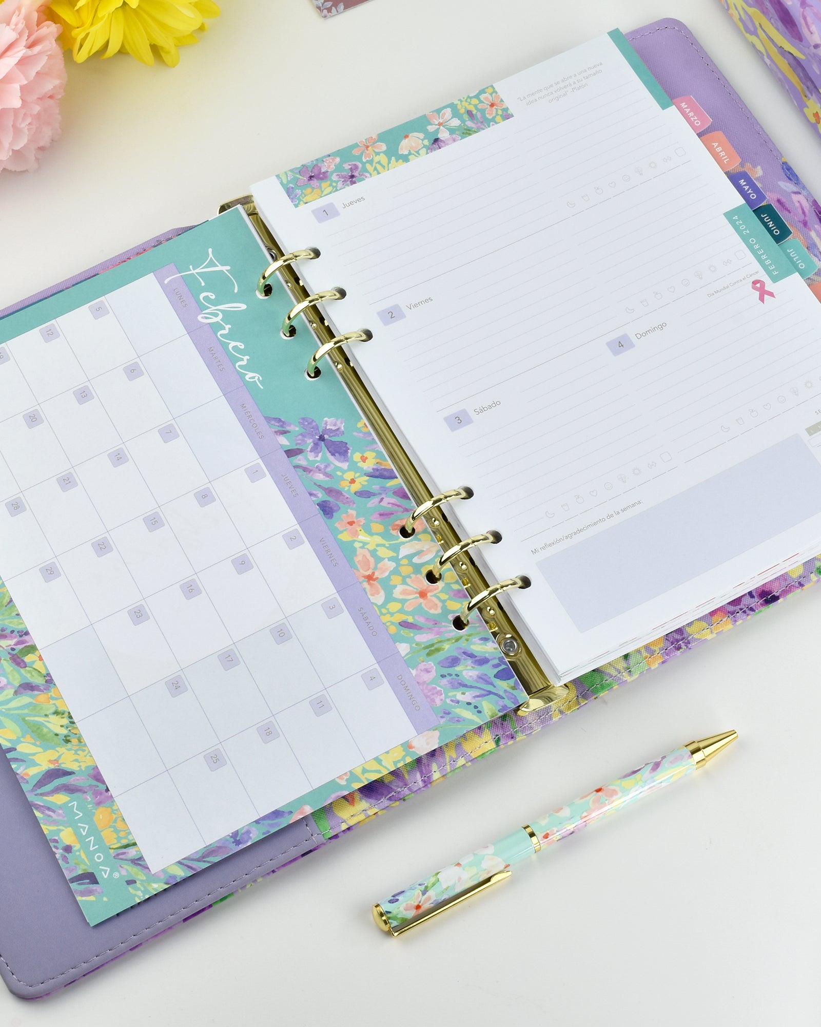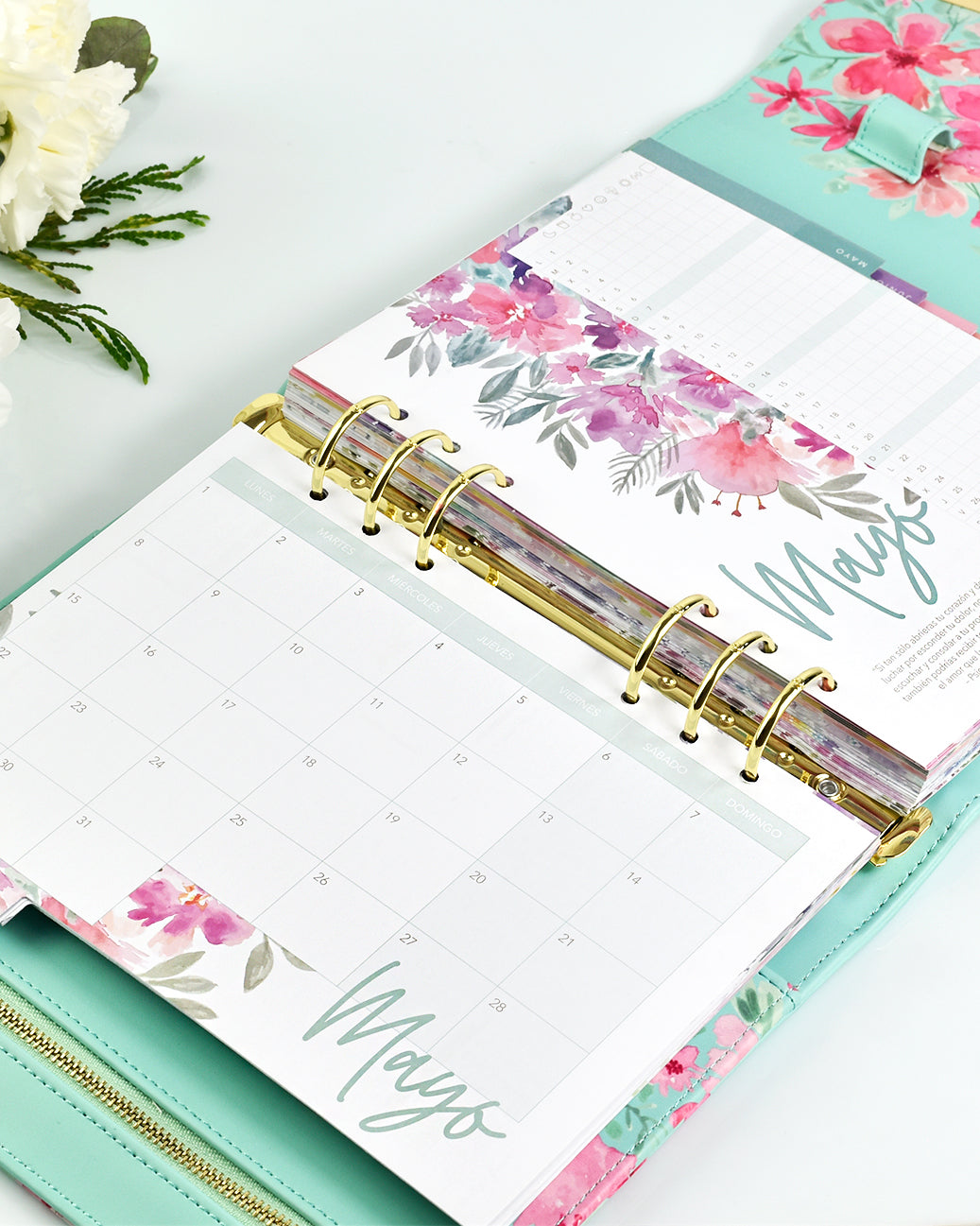 - Incluye hojas para Notas de líneas y puntitos (40 páginas), hojas de planificación mensual, control financiero, control de gastos e ingresos para cada mes, planning anual en columnas, página de horario, control menstrual, contraseñas y mapa de objetivos.