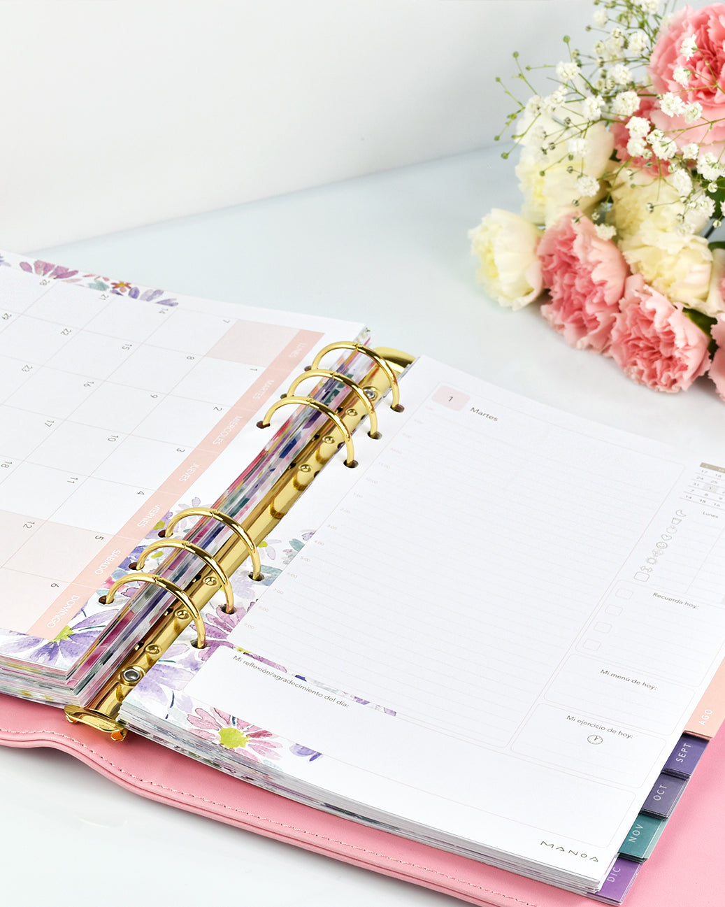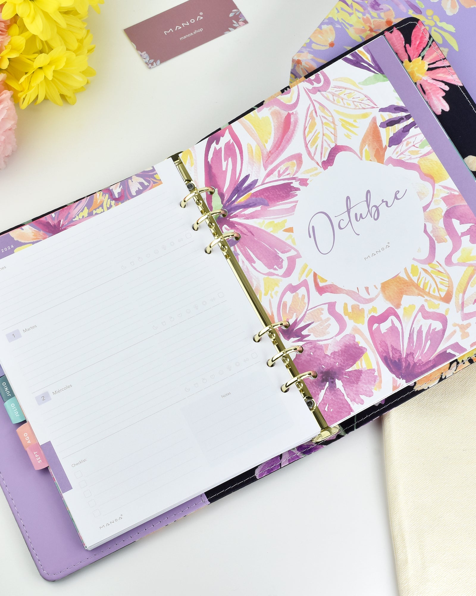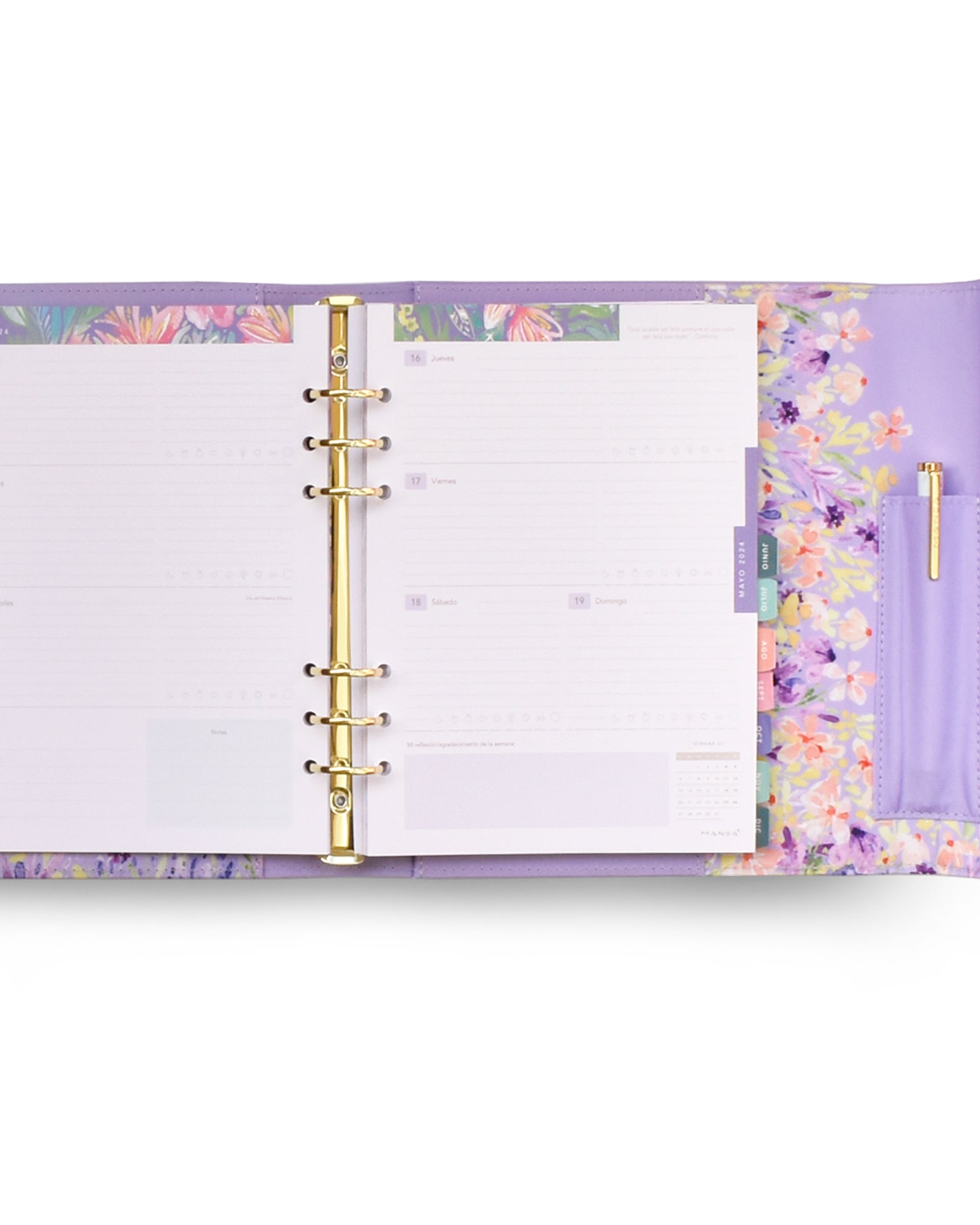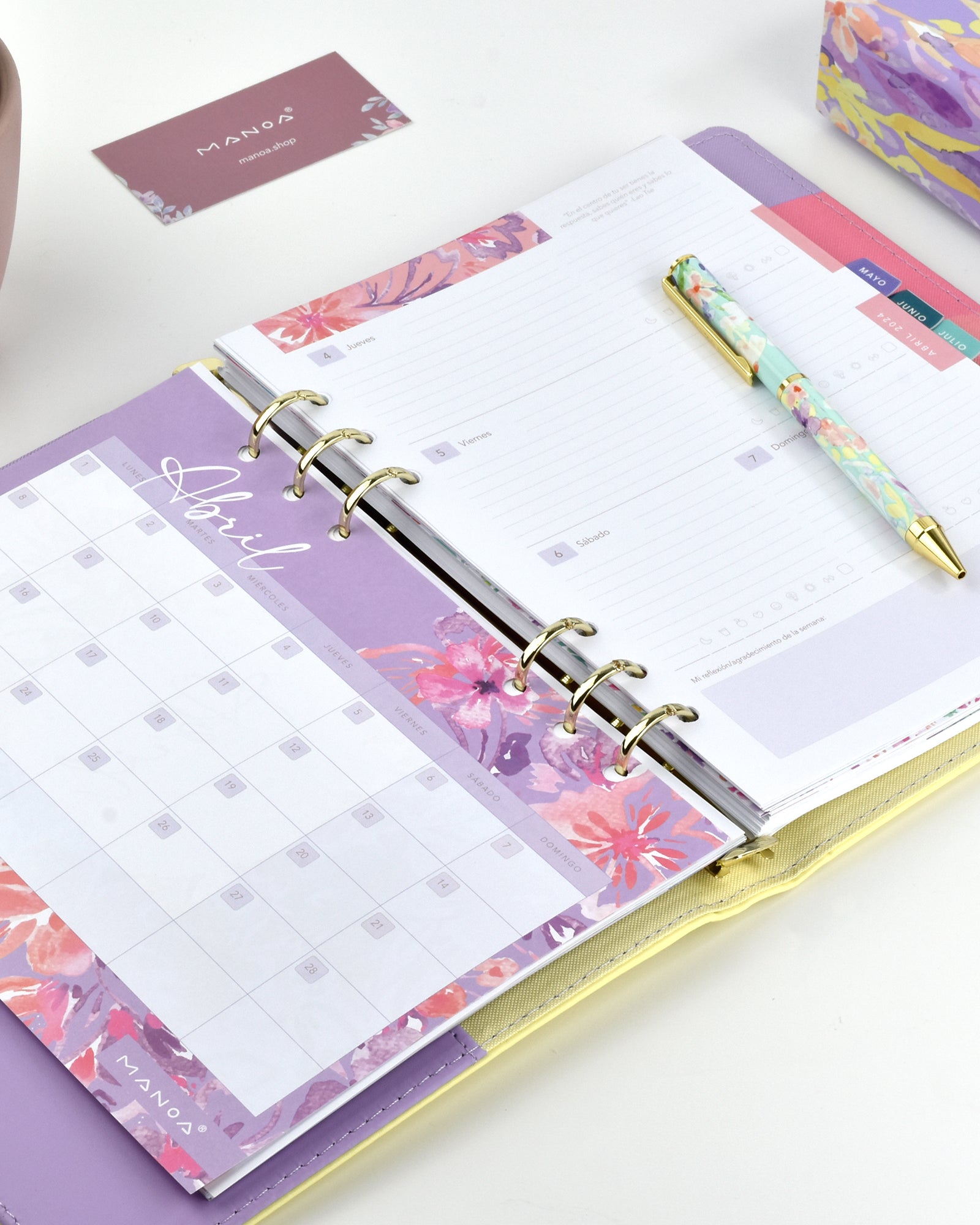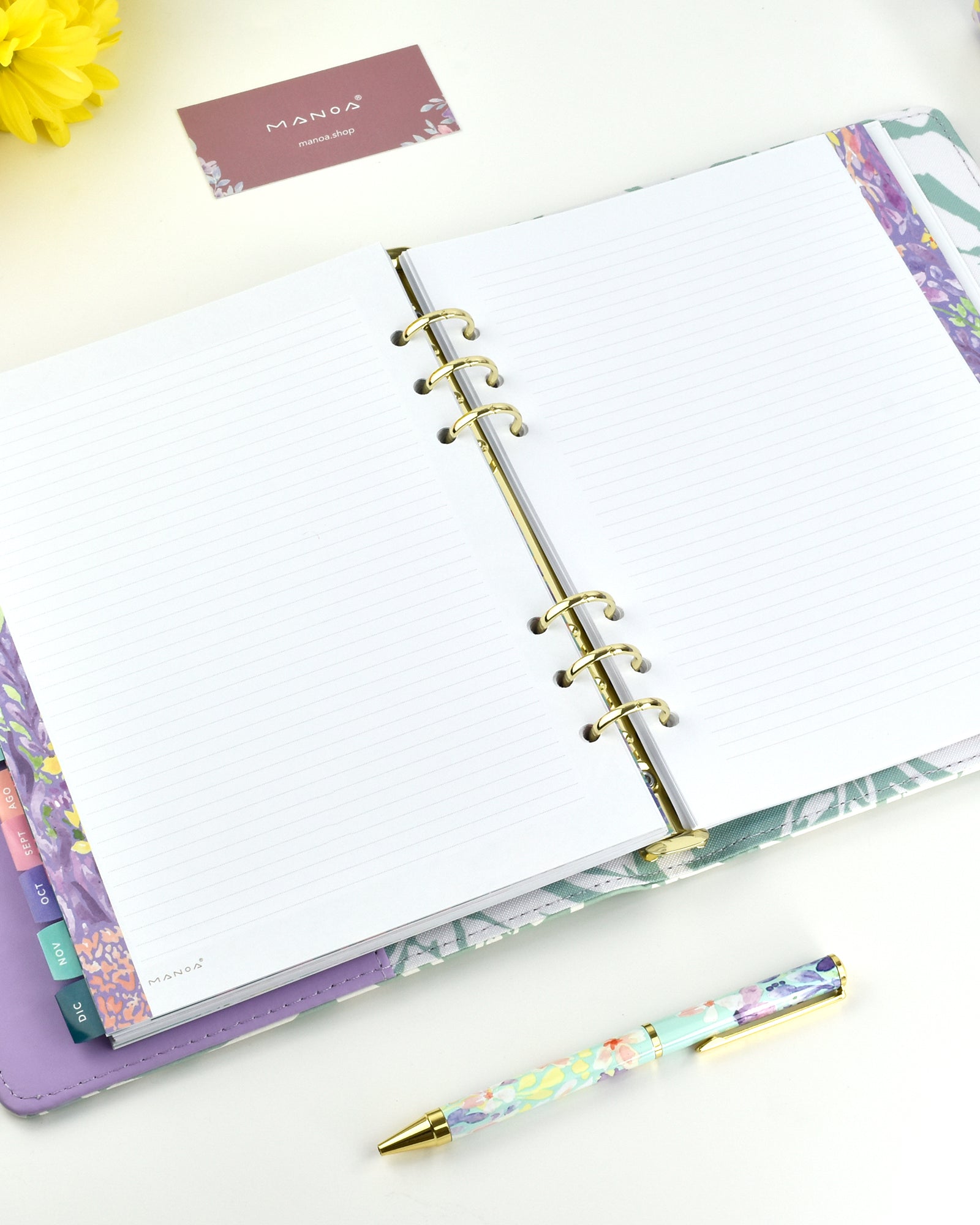 - Incluye hojas para Notas de líneas y puntitos (40 páginas), hojas de planificación mensual, control financiero, control de gastos e ingresos para cada mes, planning anual en columnas, página de horario, control menstrual, contraseñas y mapa de objetivos.