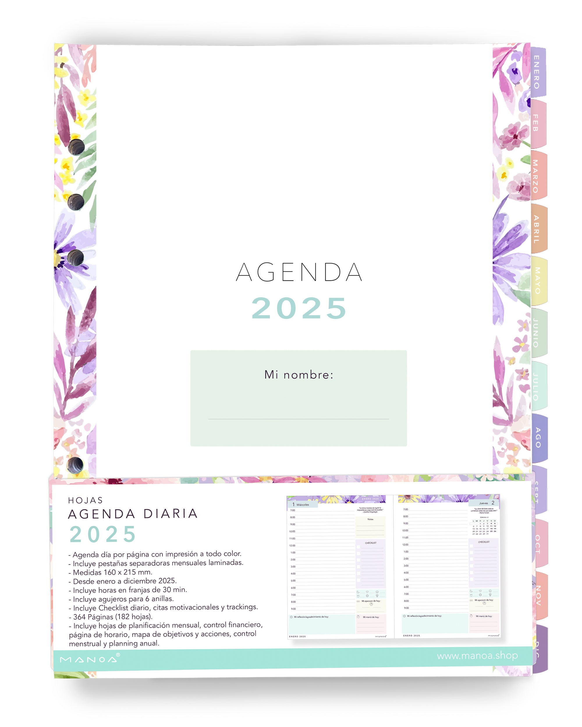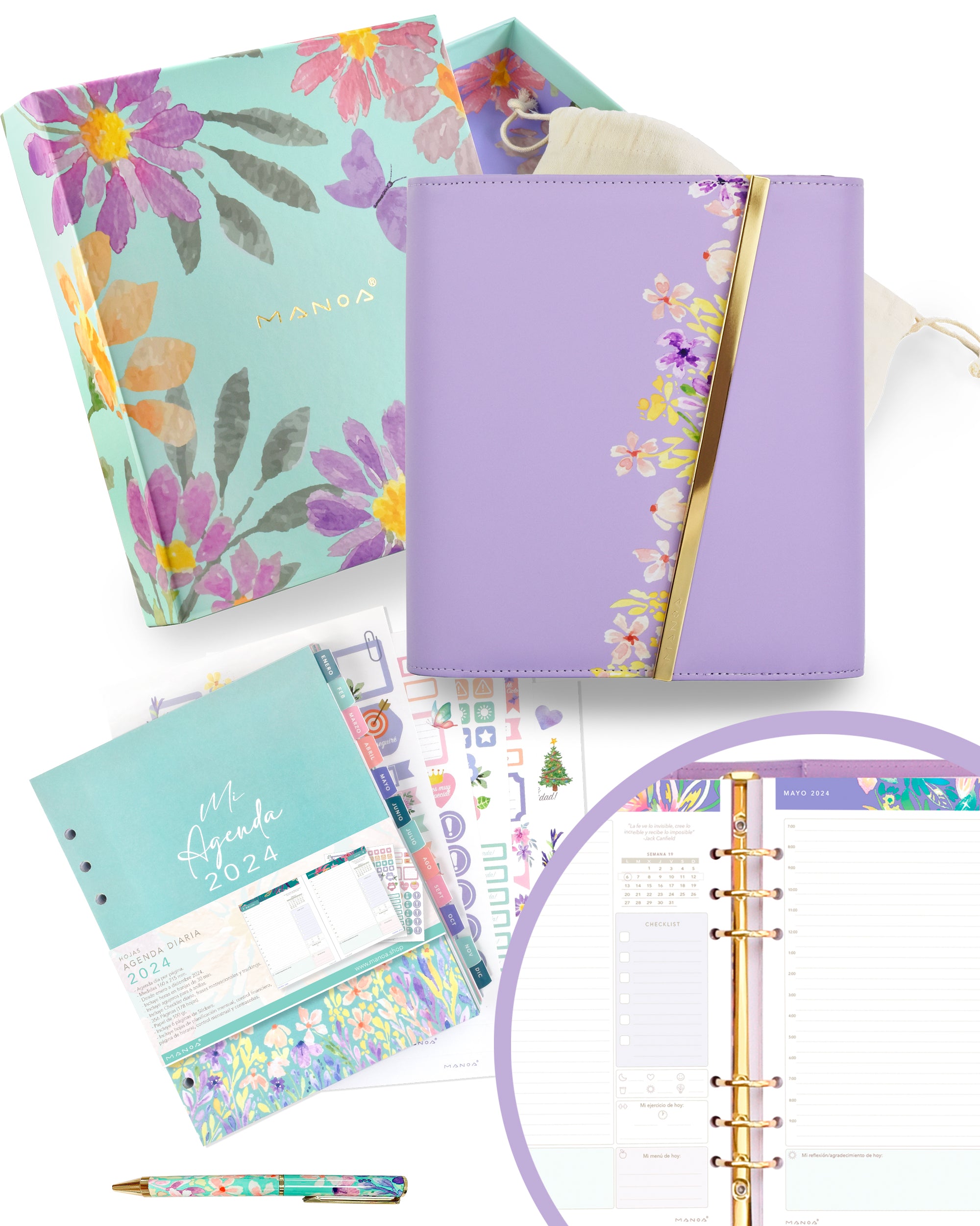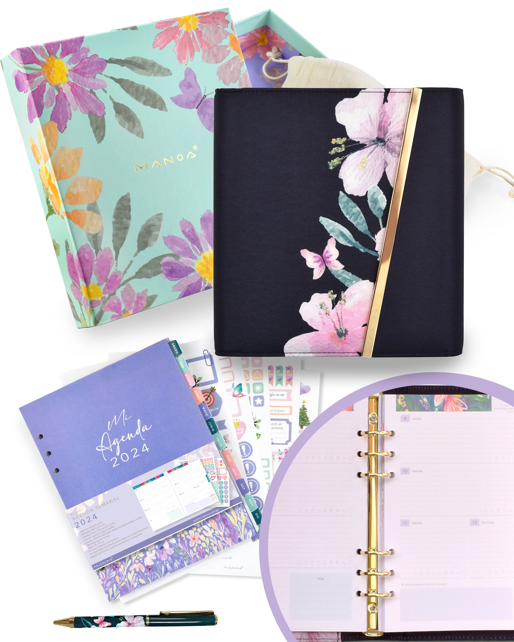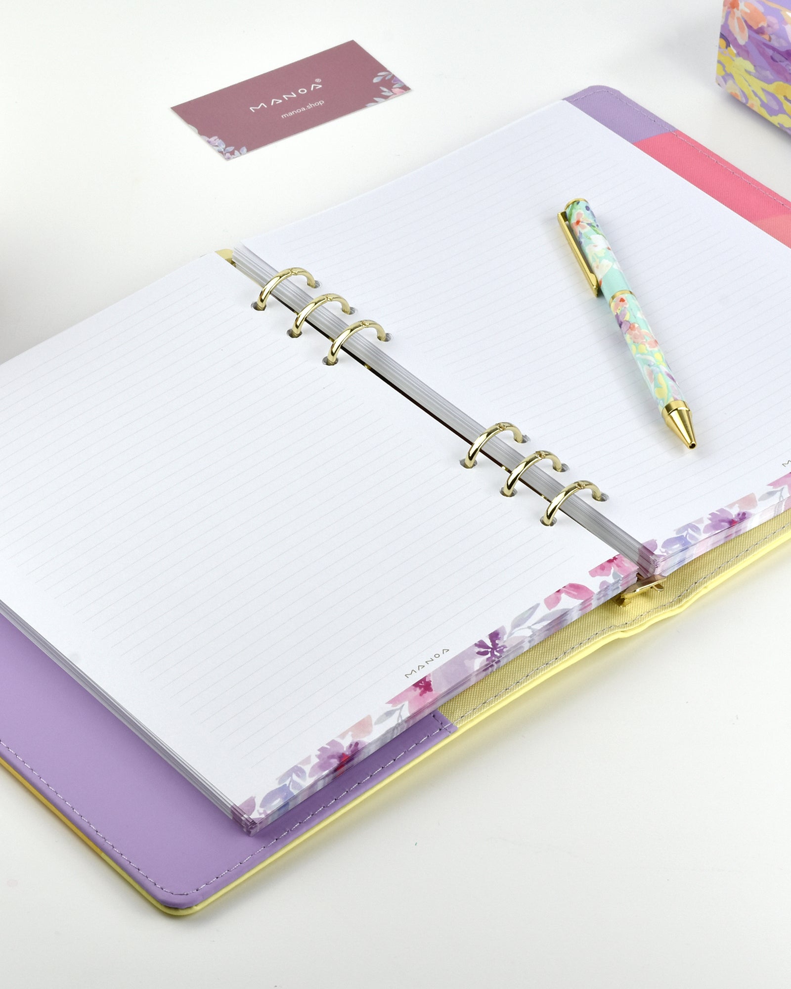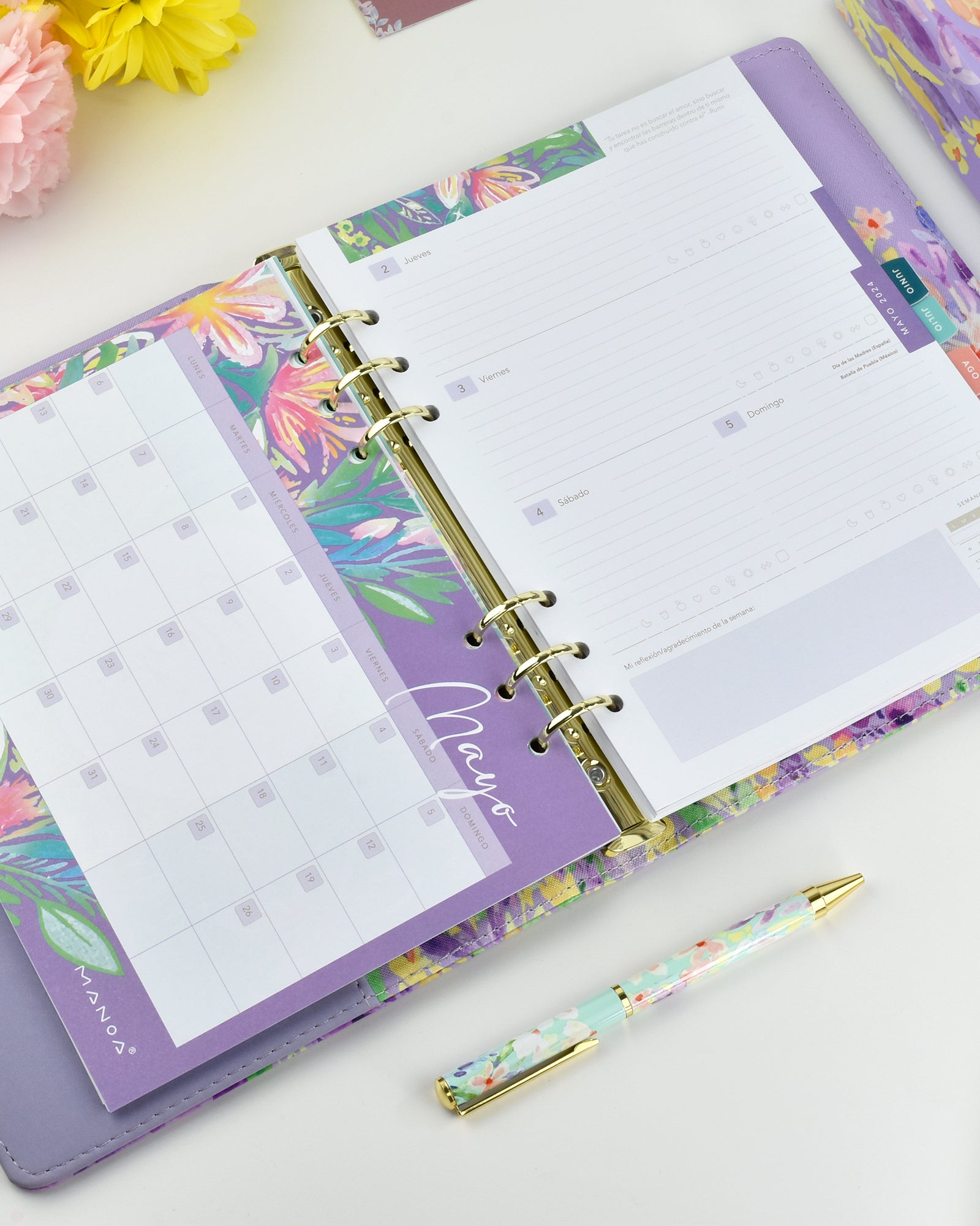 - Incluye hojas para Notas de líneas y puntitos (40 páginas), hojas de planificación mensual, control financiero, control de gastos e ingresos para cada mes, planning anual en columnas, página de horario, control menstrual, contraseñas y mapa de objetivos.