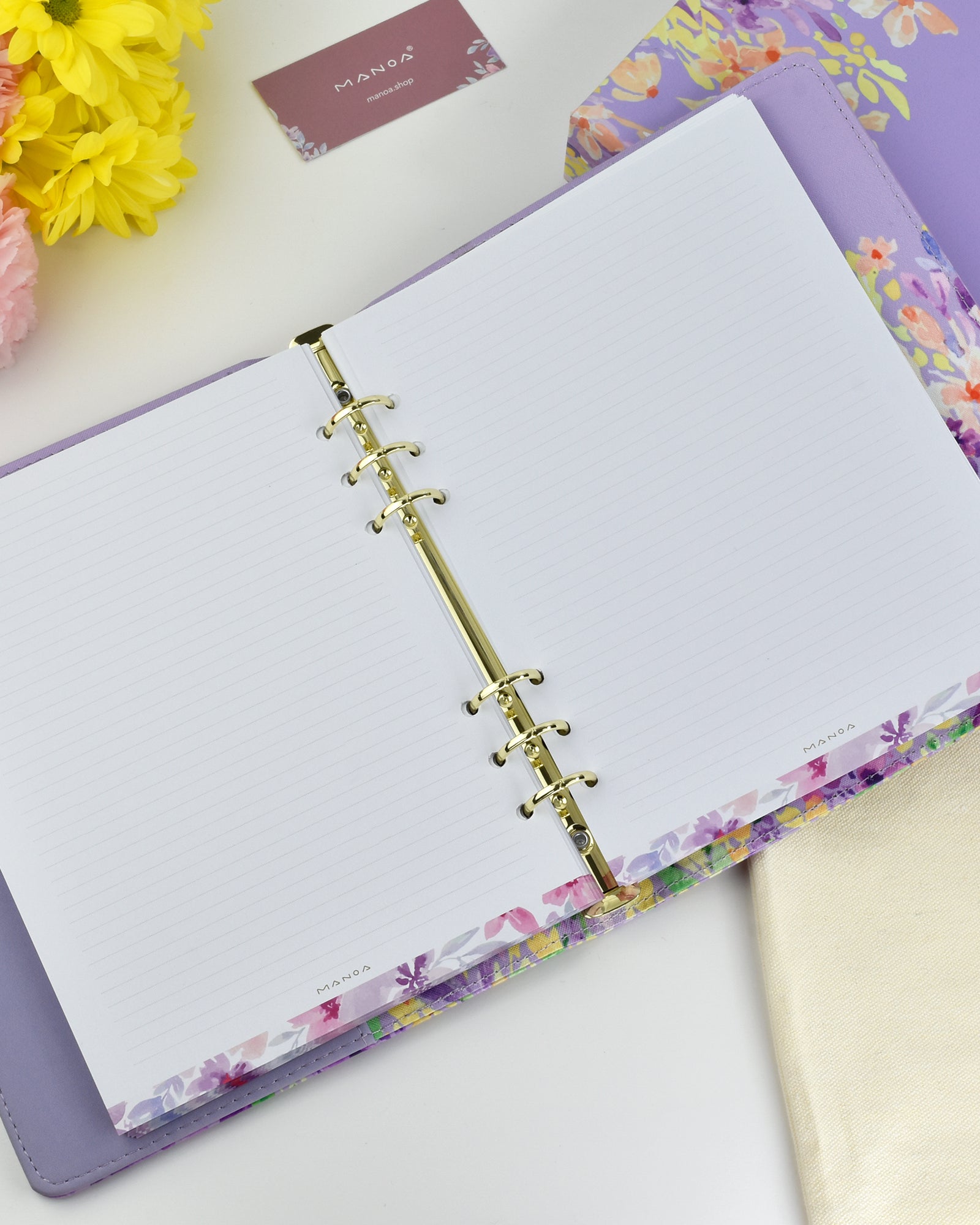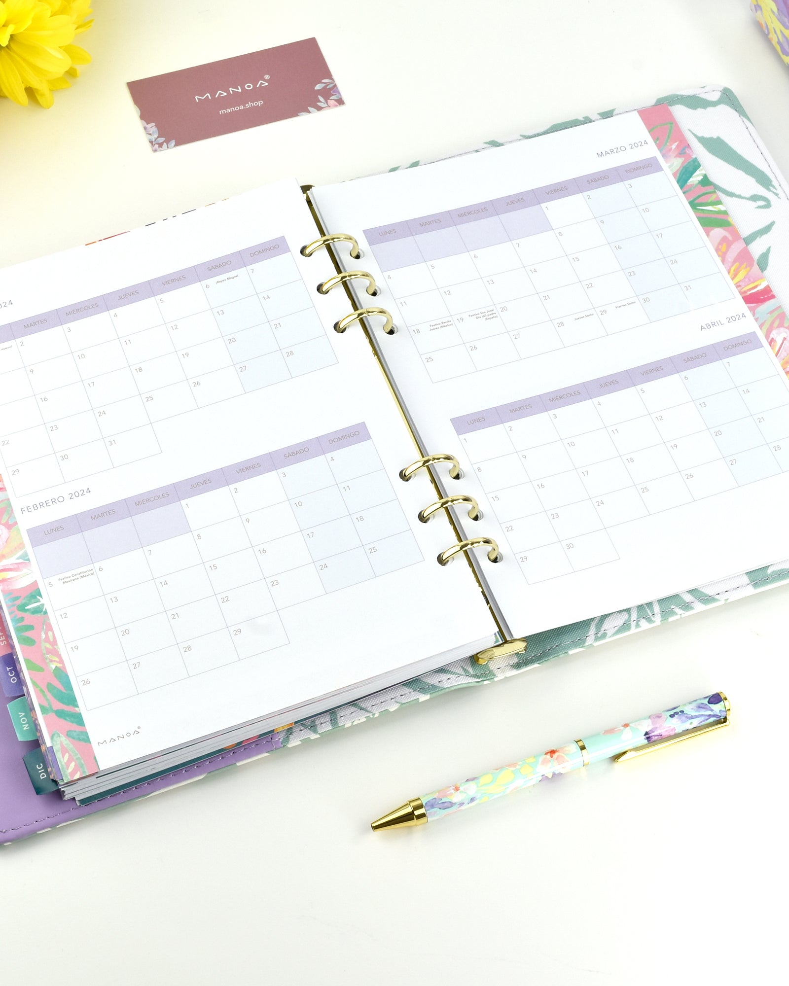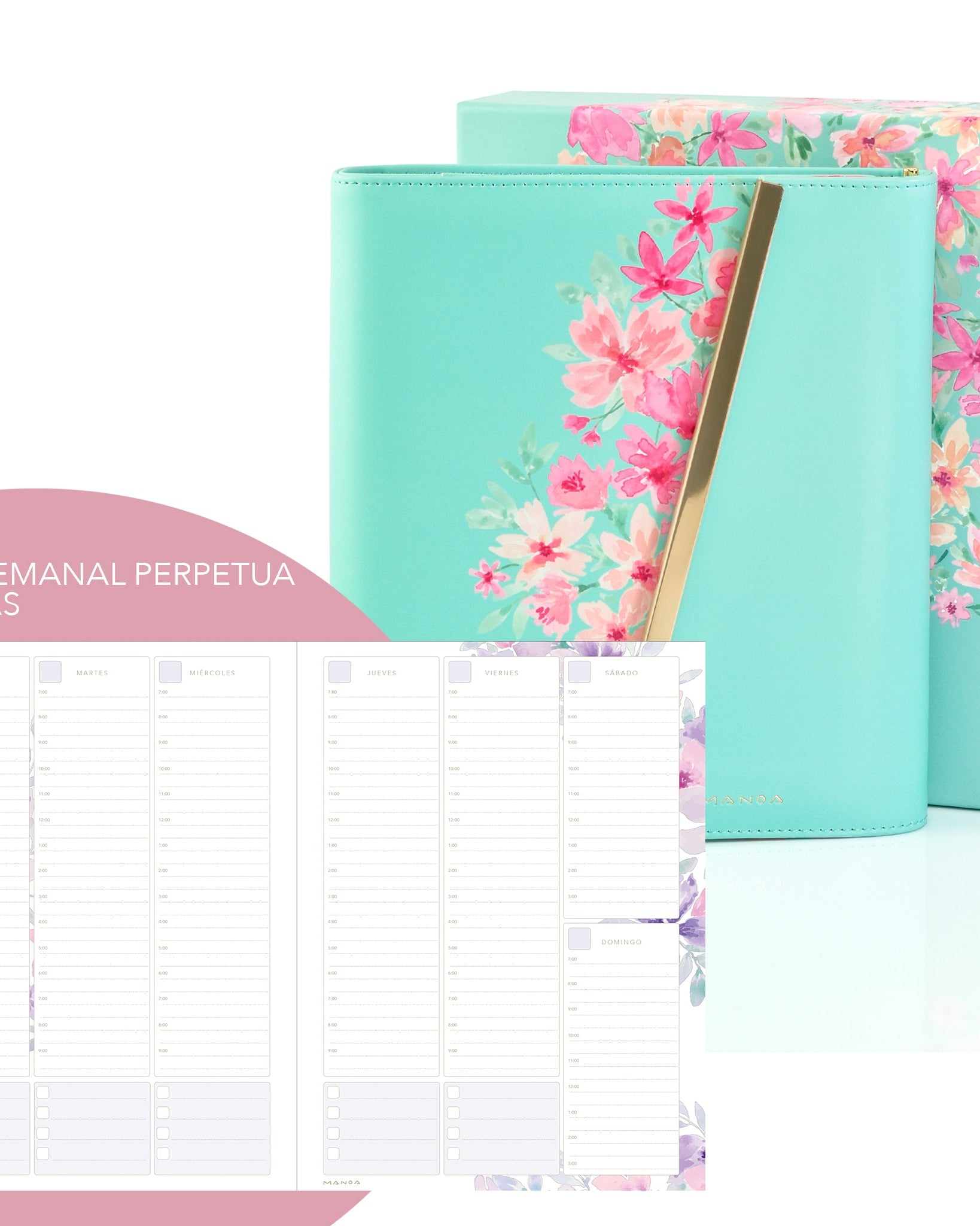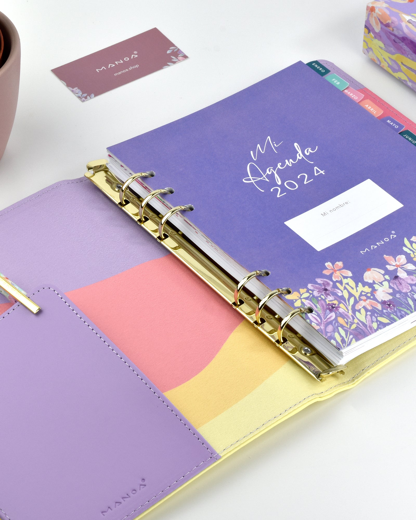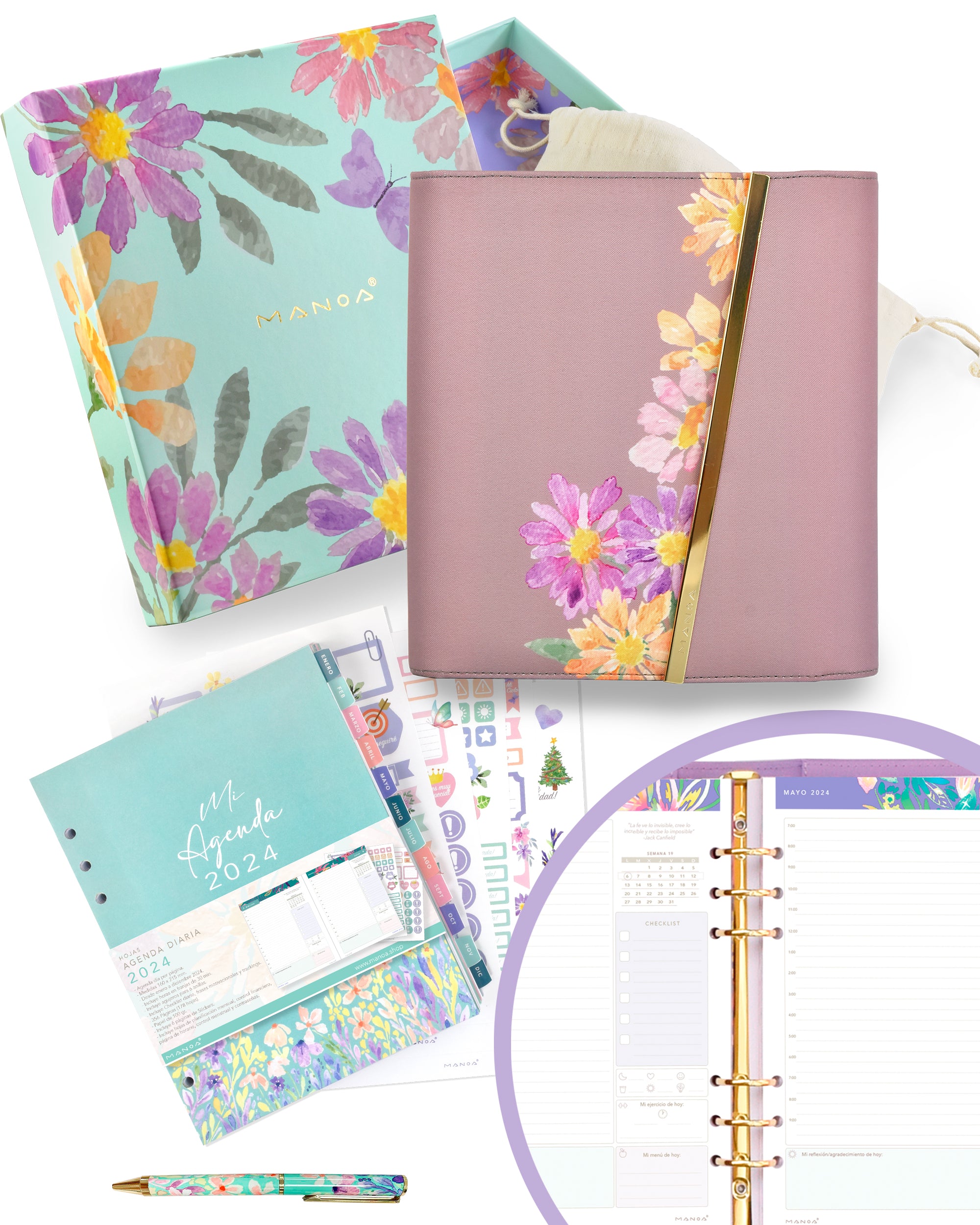 - Incluye hojas para Notas de líneas y puntitos (40 páginas), hojas de planificación mensual, control financiero, control de gastos e ingresos para cada mes, planning anual en columnas, página de horario, control menstrual, contraseñas y mapa de objetivos.