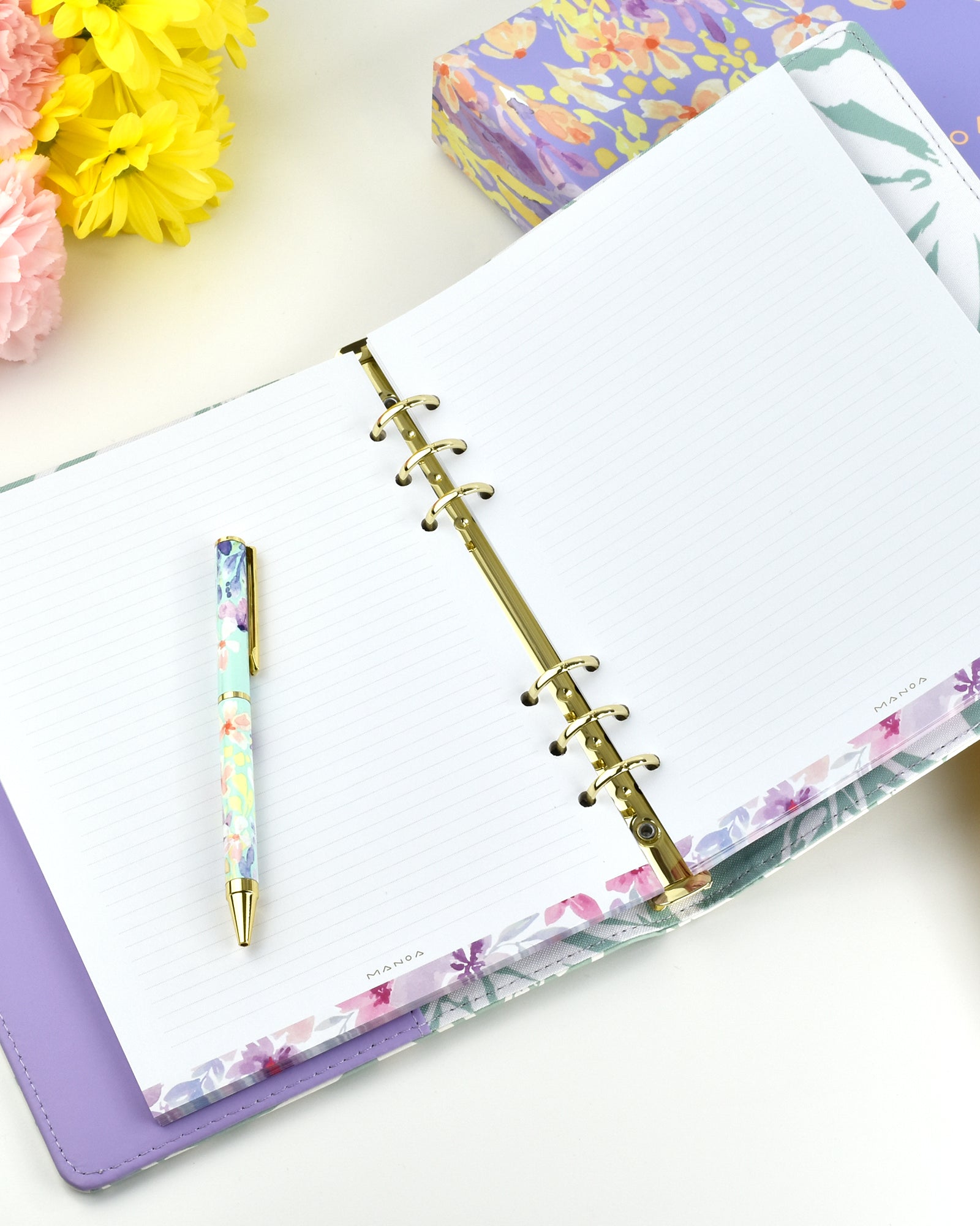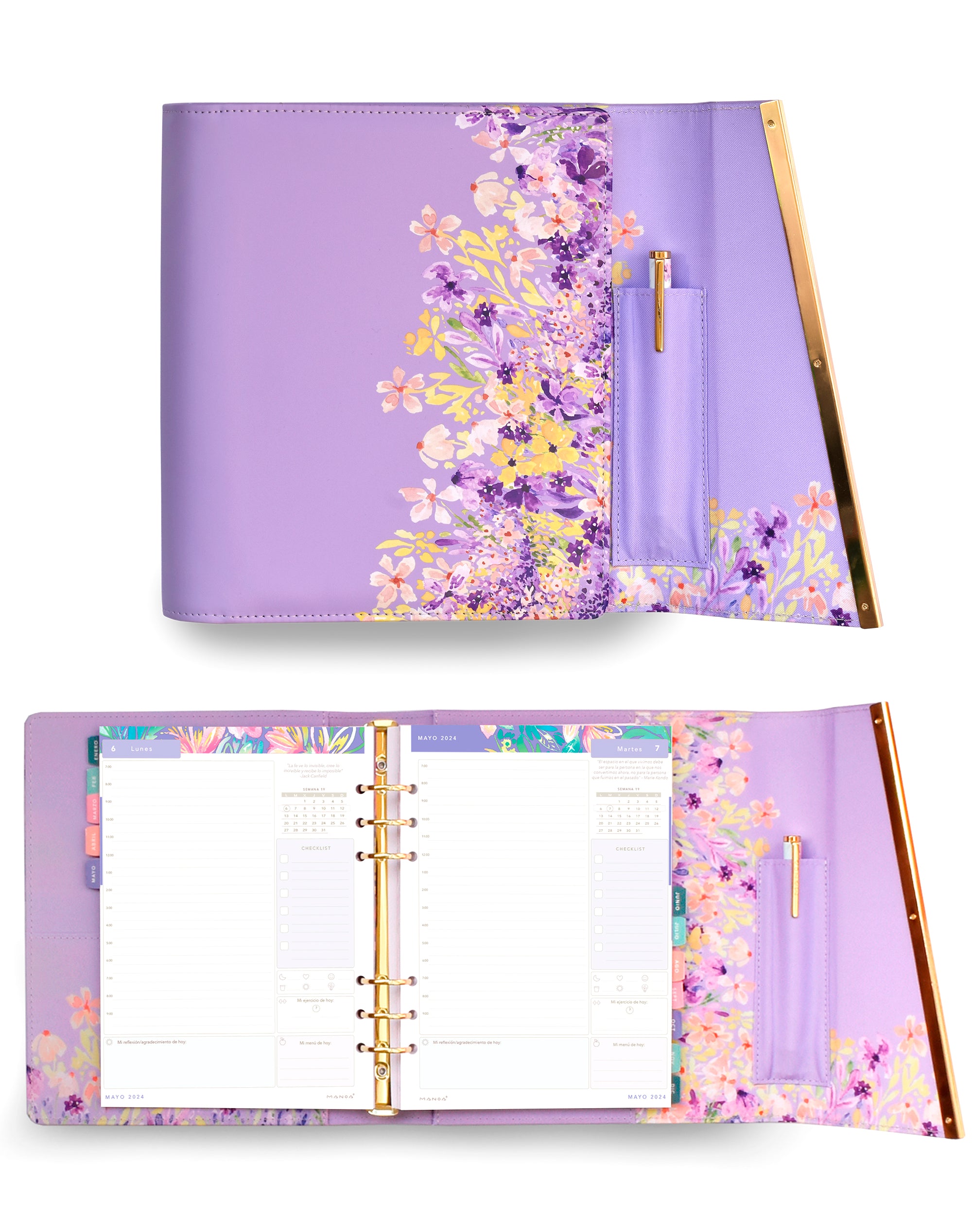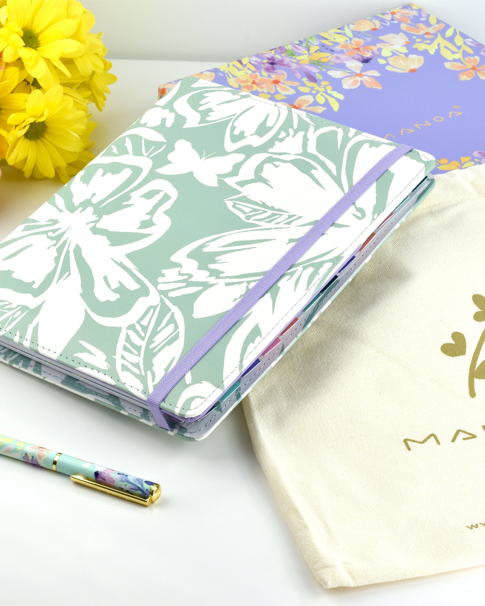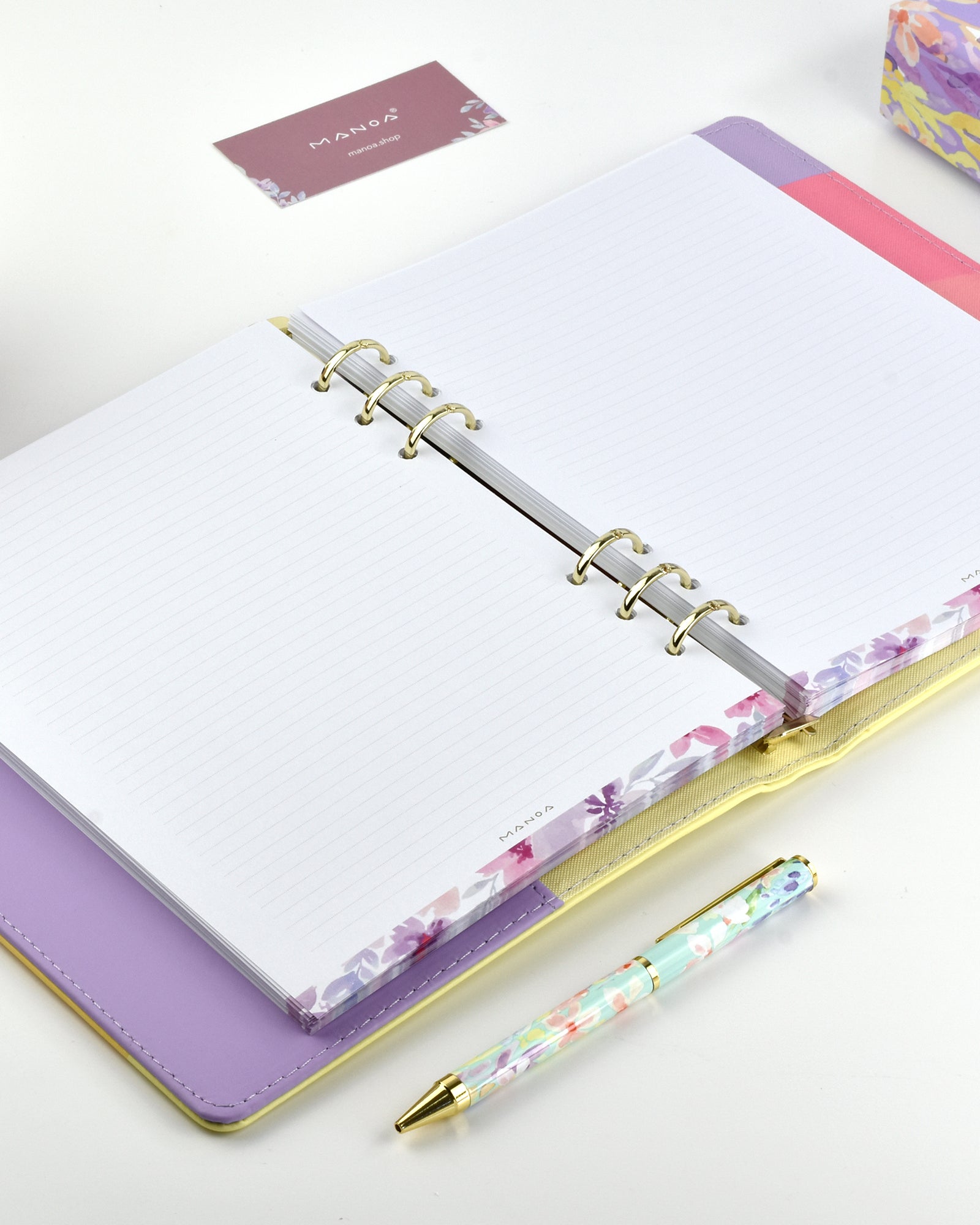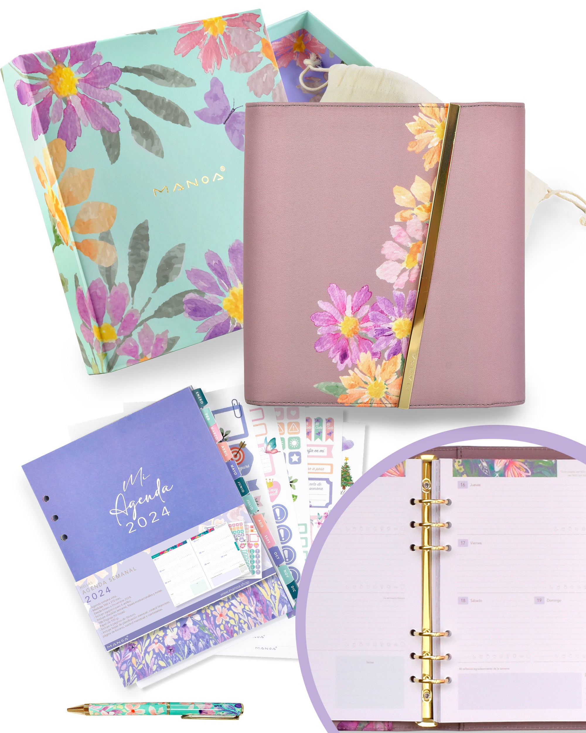 - Incluye hojas para Notas de líneas y puntitos (40 páginas), hojas de planificación mensual, control financiero, control de gastos e ingresos para cada mes, planning anual en columnas, página de horario, control menstrual, contraseñas y mapa de objetivos.