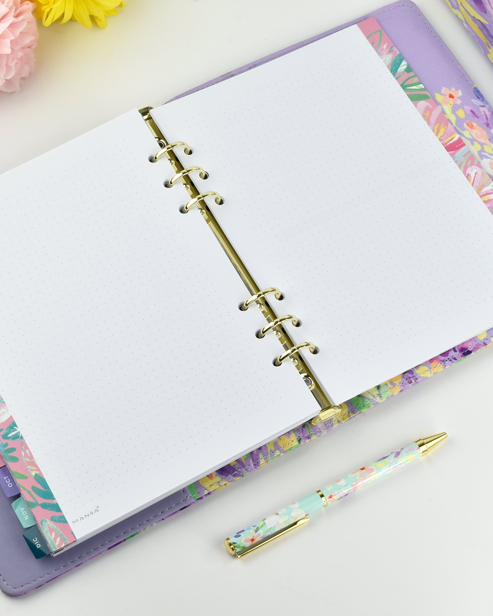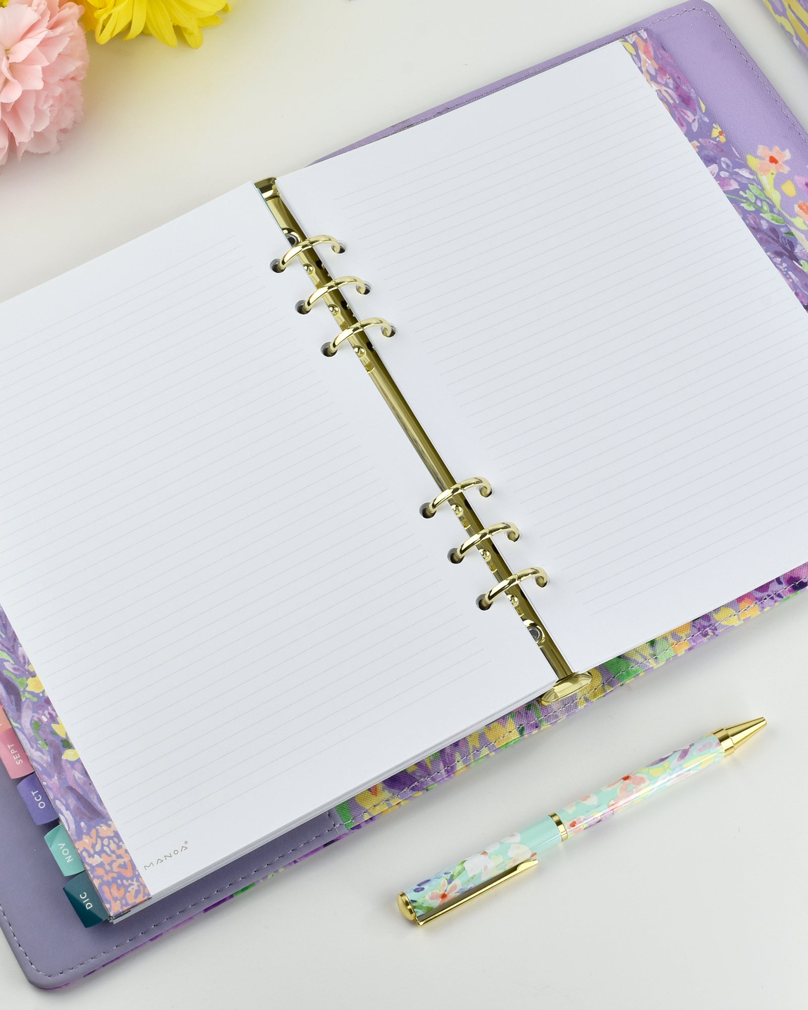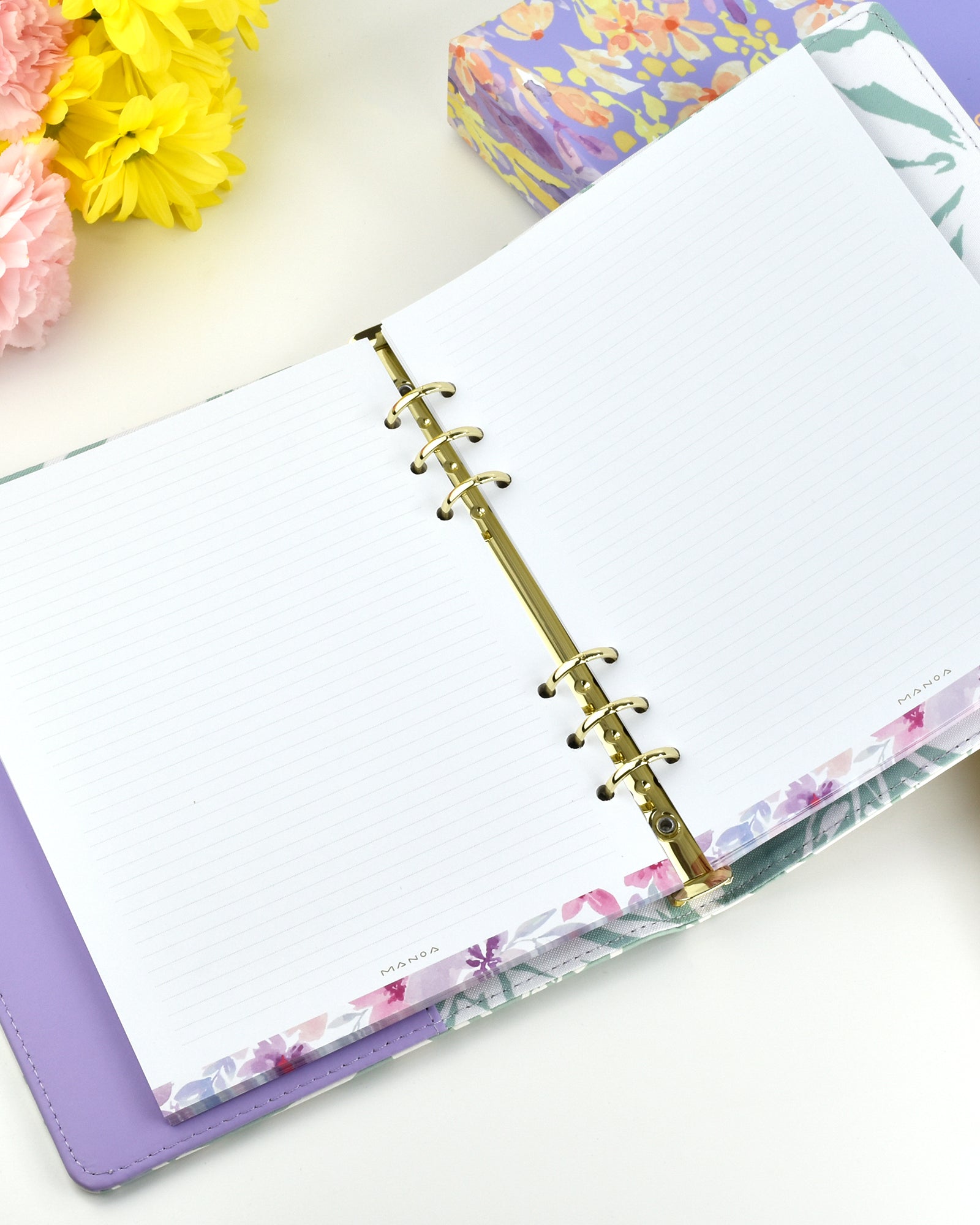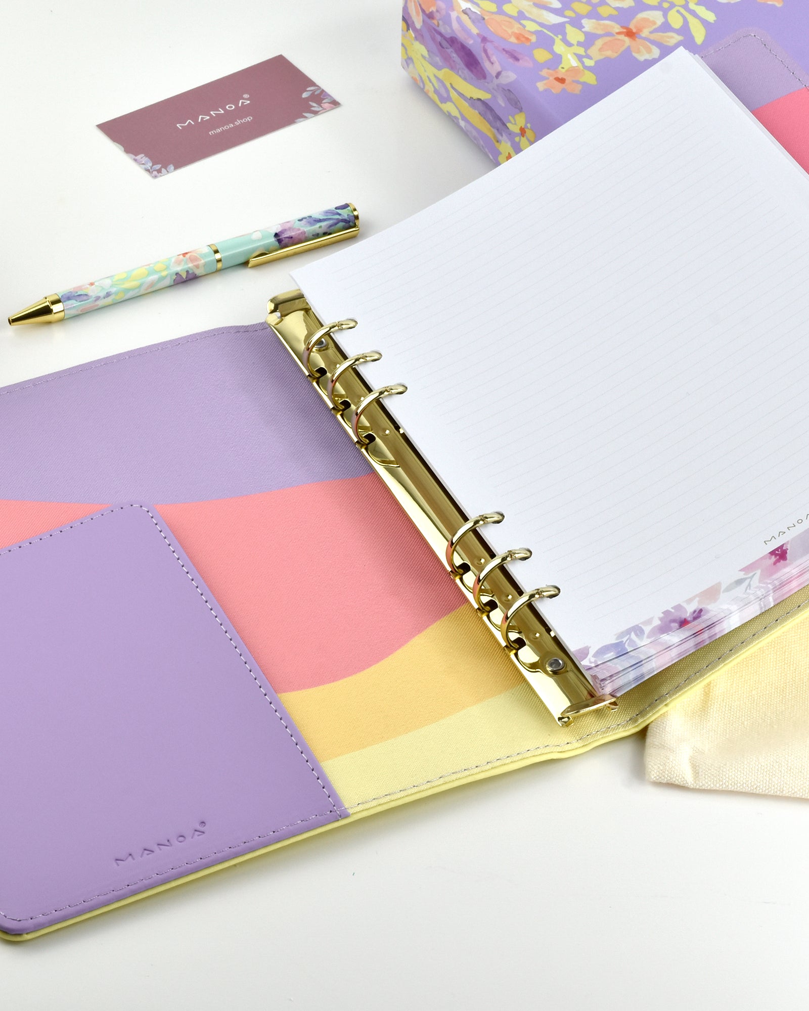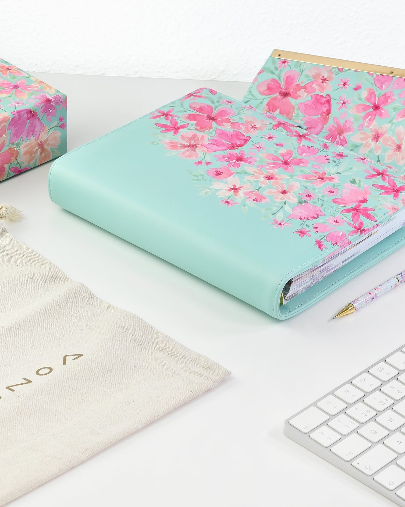 - Incluye hojas para Notas de líneas y puntitos (40 páginas), hojas de planificación mensual, control financiero, control de gastos e ingresos para cada mes, planning anual en columnas, página de horario, control menstrual, contraseñas y mapa de objetivos.