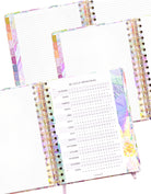 - Incluye hojas para Notas de líneas y puntitos (40 páginas), hojas de planificación mensual, control financiero, control de gastos e ingresos para cada mes, planning anual en columnas, página de horario, control menstrual, contraseñas y mapa de objetivos.